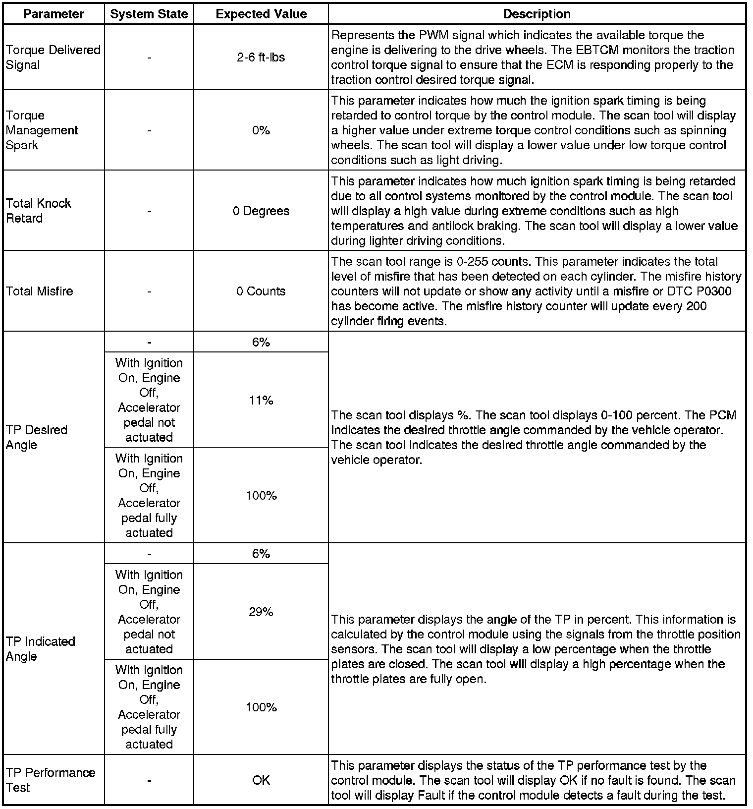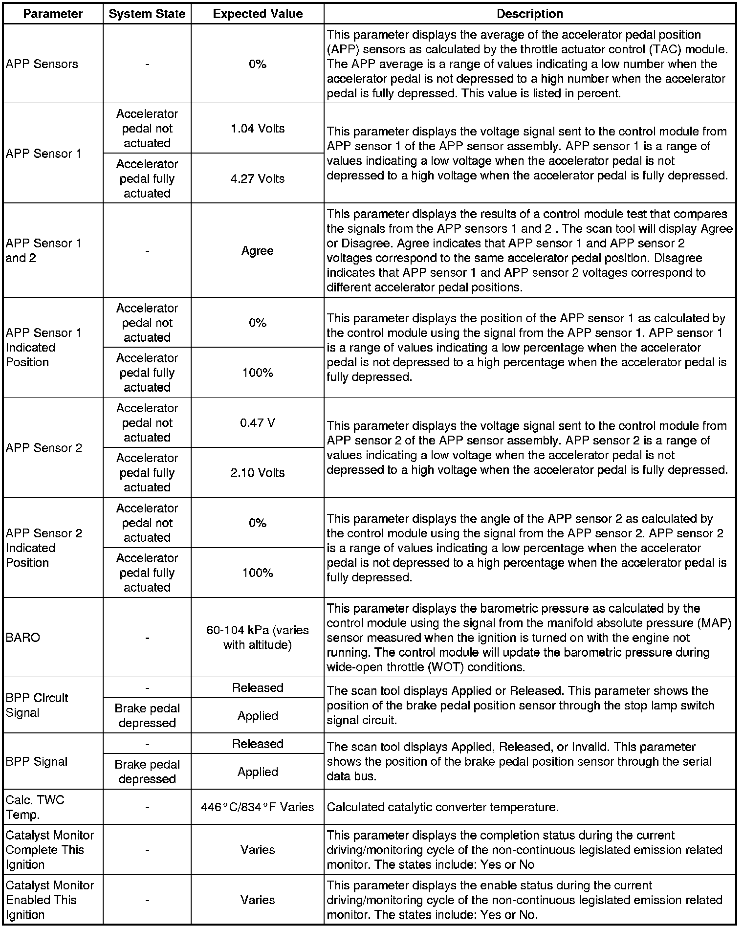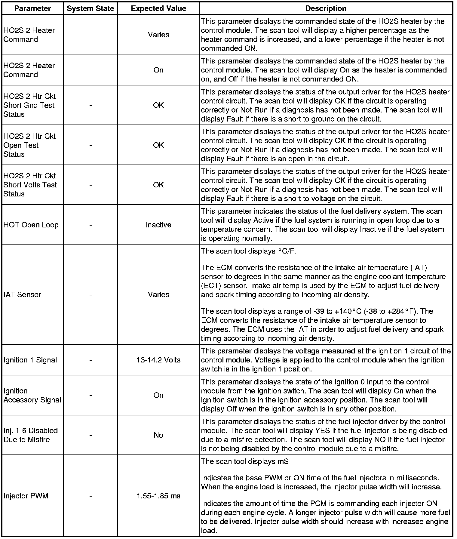 Only the parameters listed below are referenced in this service manual for use in diagnosis. If all values are within the typical range described below, refer to Symptoms - Engine Controls (- Symptoms - Engine Controls) for diagnosis.