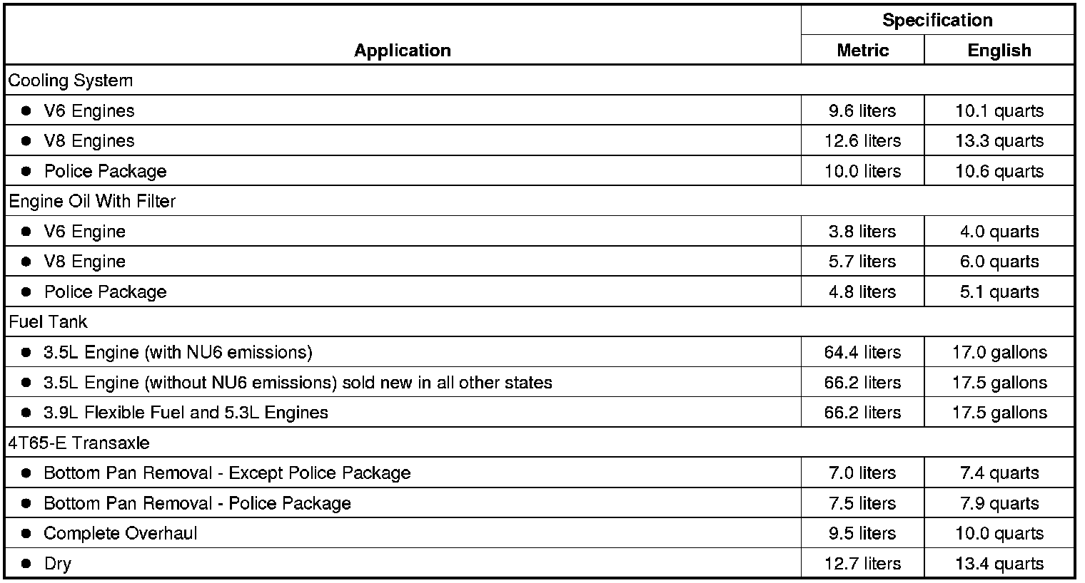 Home >> Chevrolet >> 2009 >> Impala V6-3.5L >> Repair and Diagnosis >> Specifications >> Capacity Specifications >> Maintenance