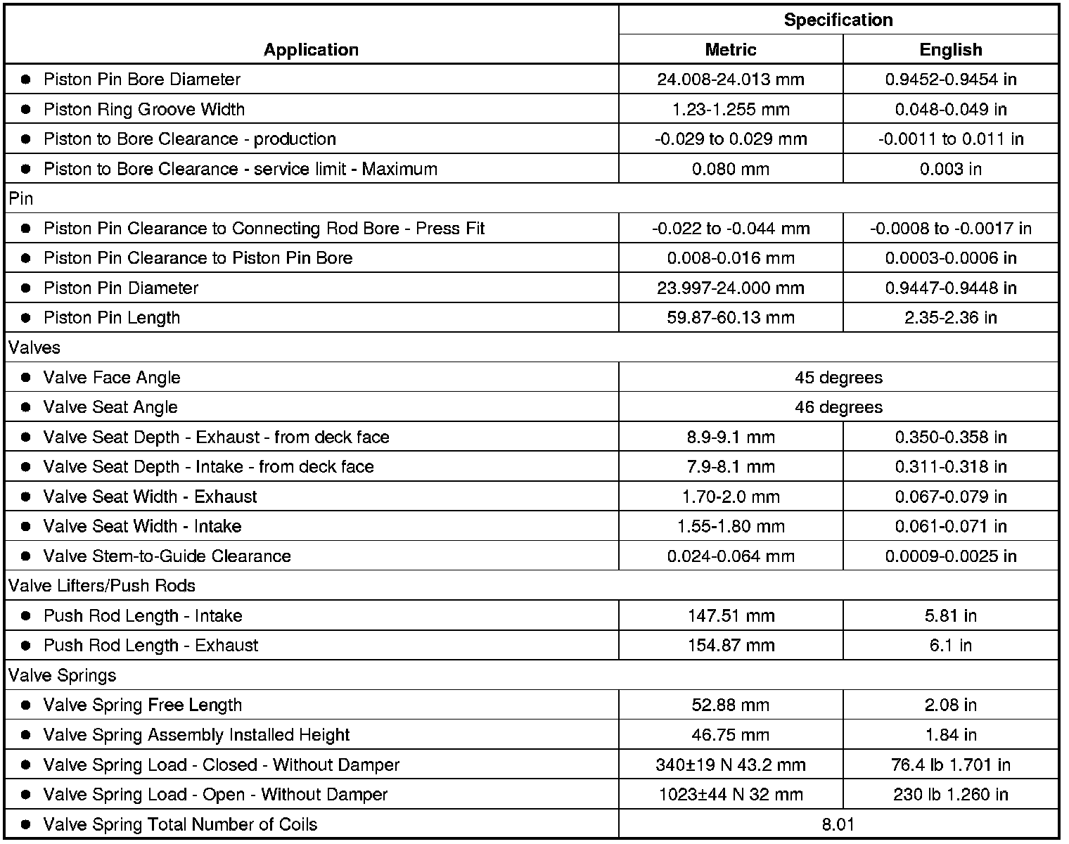 Engine Mechanical Specifications