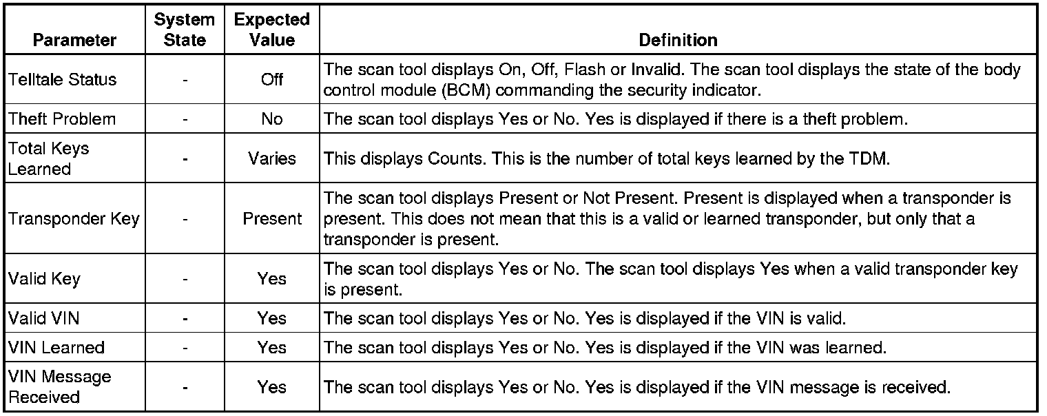 Theft Deterrent Module Scan Tool Information
