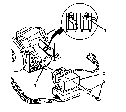 2. Install the ignition switch assembly connector (1) onto the ignition lock cylinder case (4).