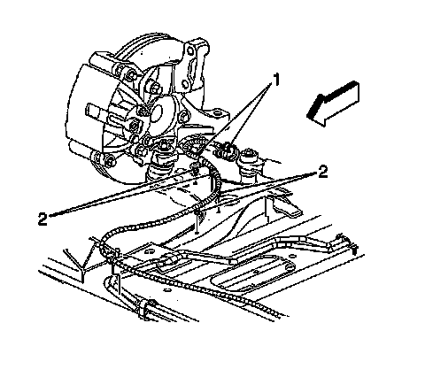 14.Remove both front wheel speed harness retainers (2) from the frame and the lower control arms, if equipped.