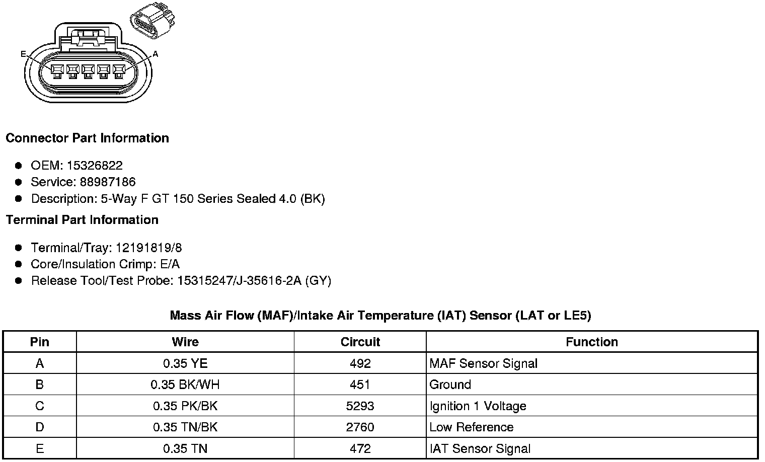 Mass Air Flow (MAF)/Intake Air Temperature (IAT) Sensor (LAT or LE5)