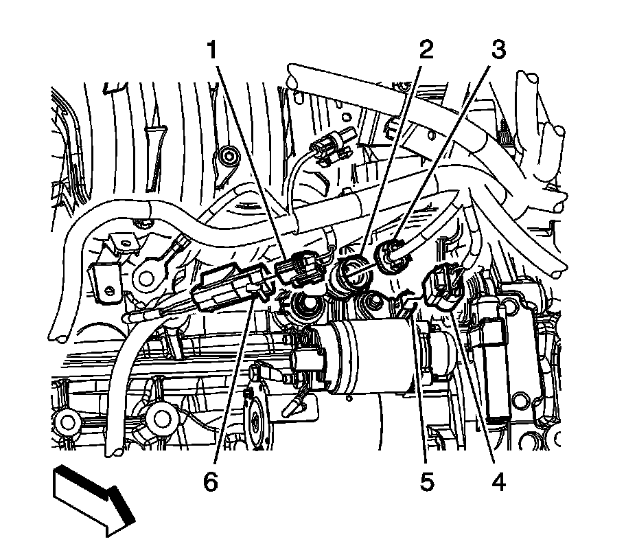 3. Disconnect the engine wiring harness electrical connector (1) from the knock sensor pigtail electrical connector (6).