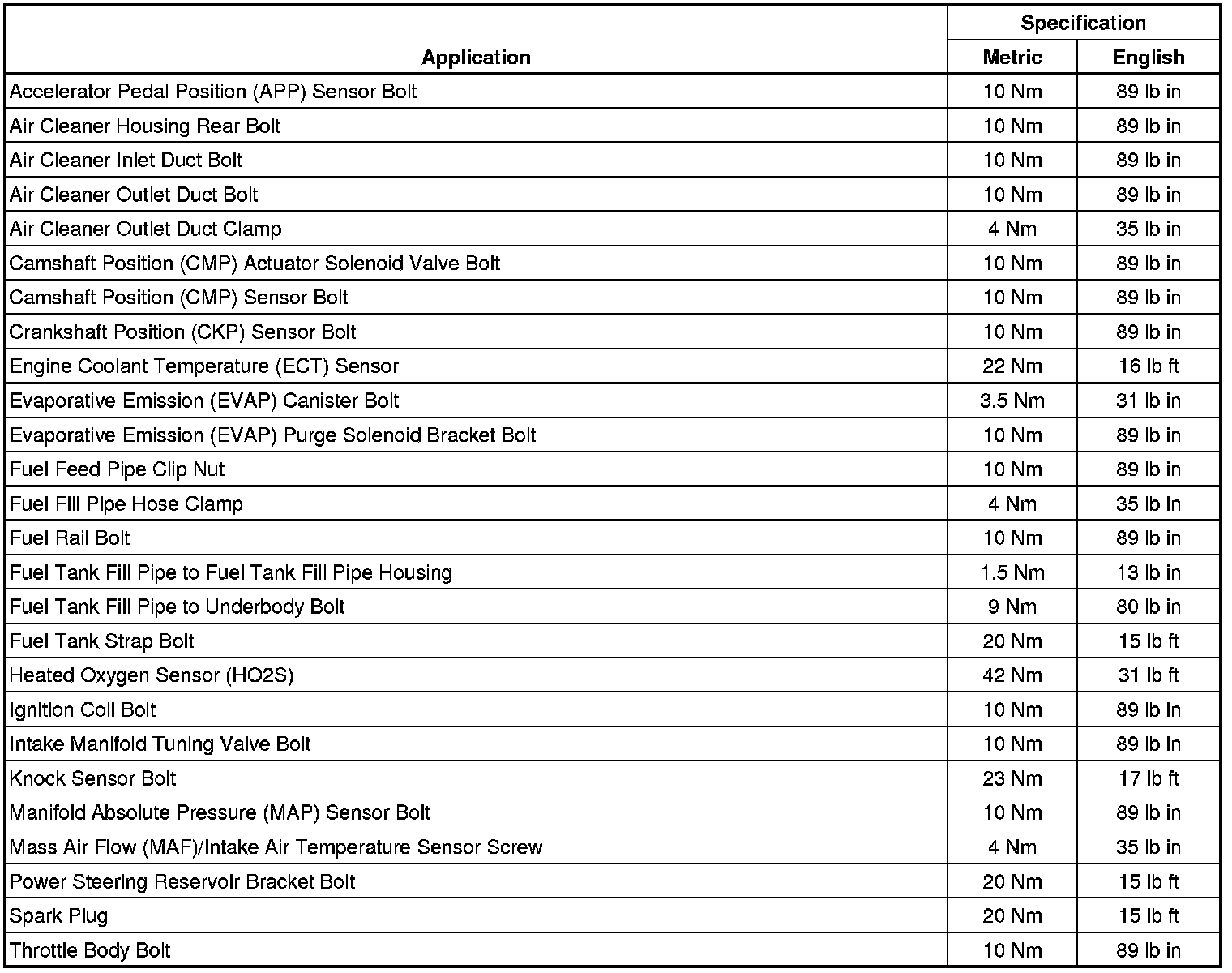 Fastener Tightening Specifications