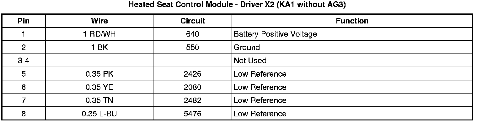 Heated Seat Control Module - Driver X3 (KA1 without AG3)