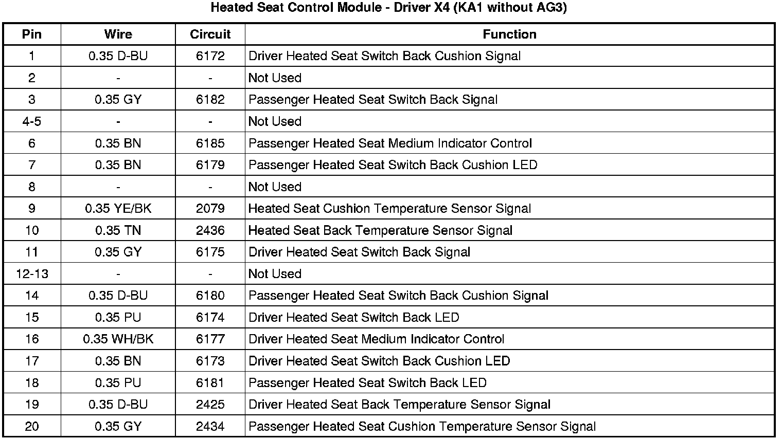 Heated Seat Control Module - Driver X4 (KA1 without AG3)