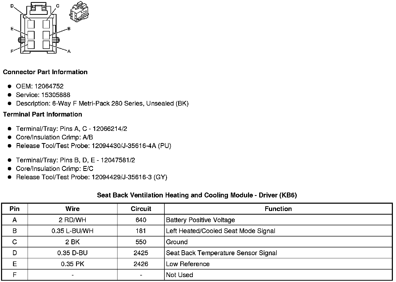 Seat Back Ventilation Heating and Cooling Module - Driver (KB6)