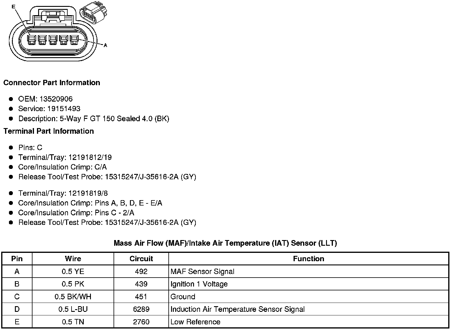 Mass Air Flow (MAF)/Intake Air Temperature (IAT) Sensor (LLT)
