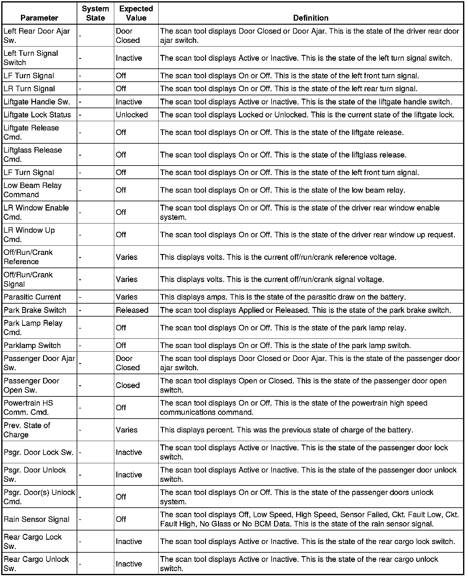 Body Control Module Scan Tool Information