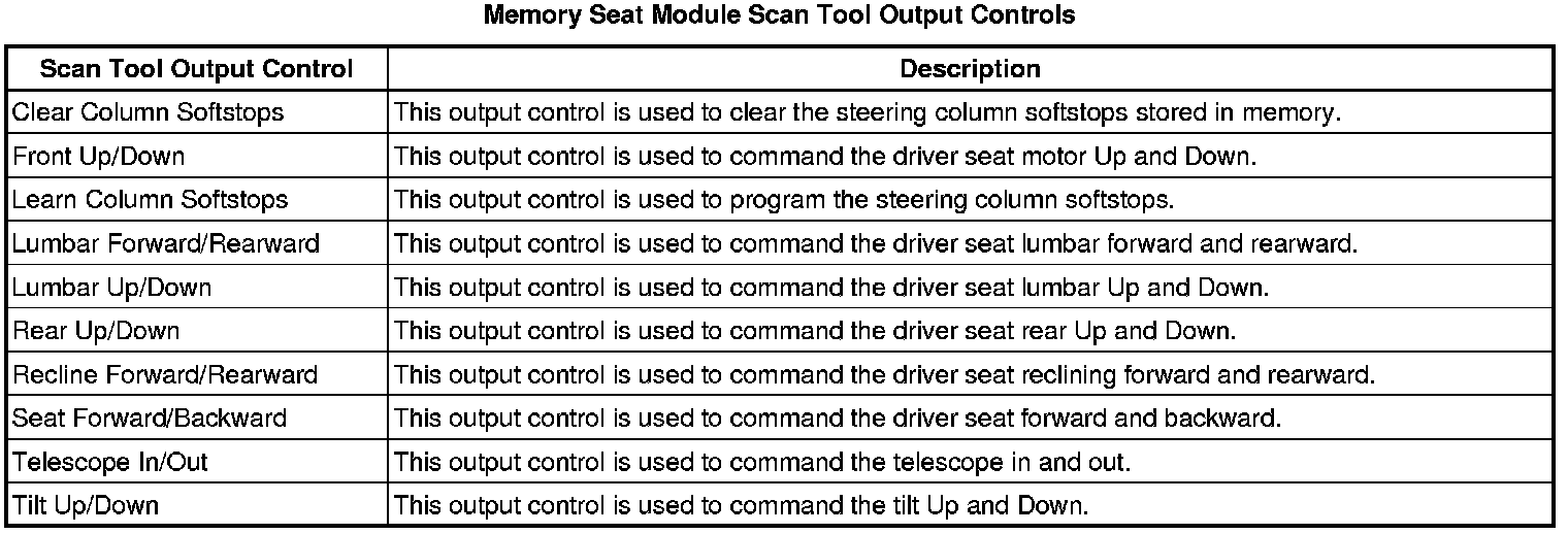 Driver Seat Adjuster Memory Module Scan Tool Information