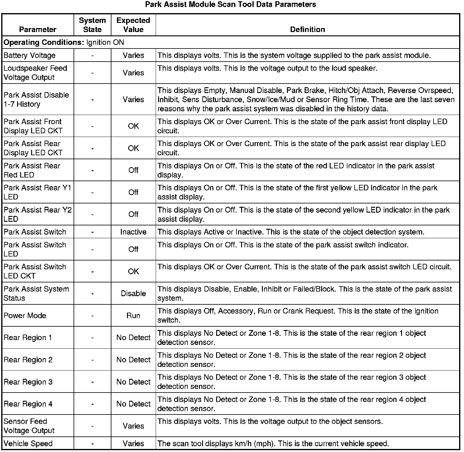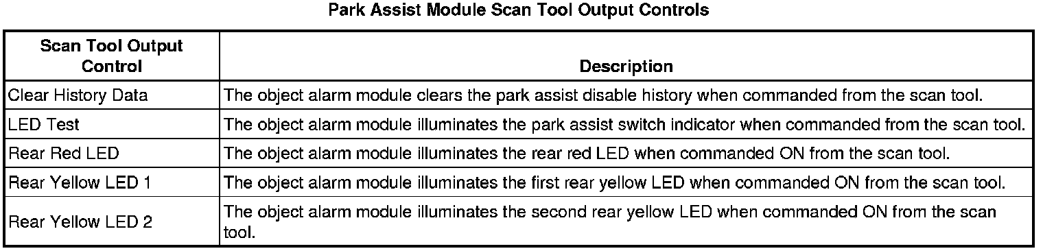 Rear Object Alarm Module Scan Tool Information