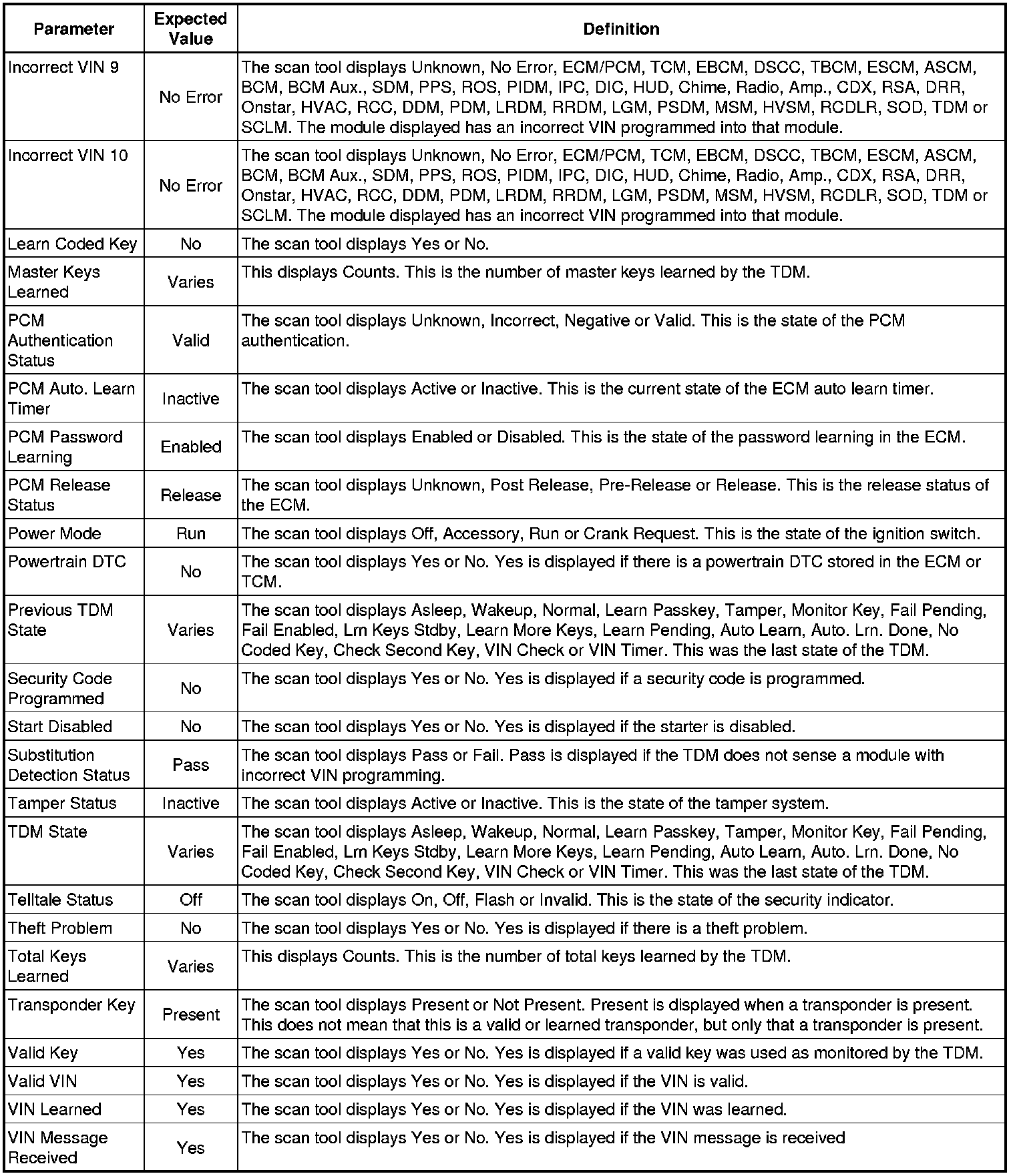 Theft Deterrent Module Scan Tool Information
