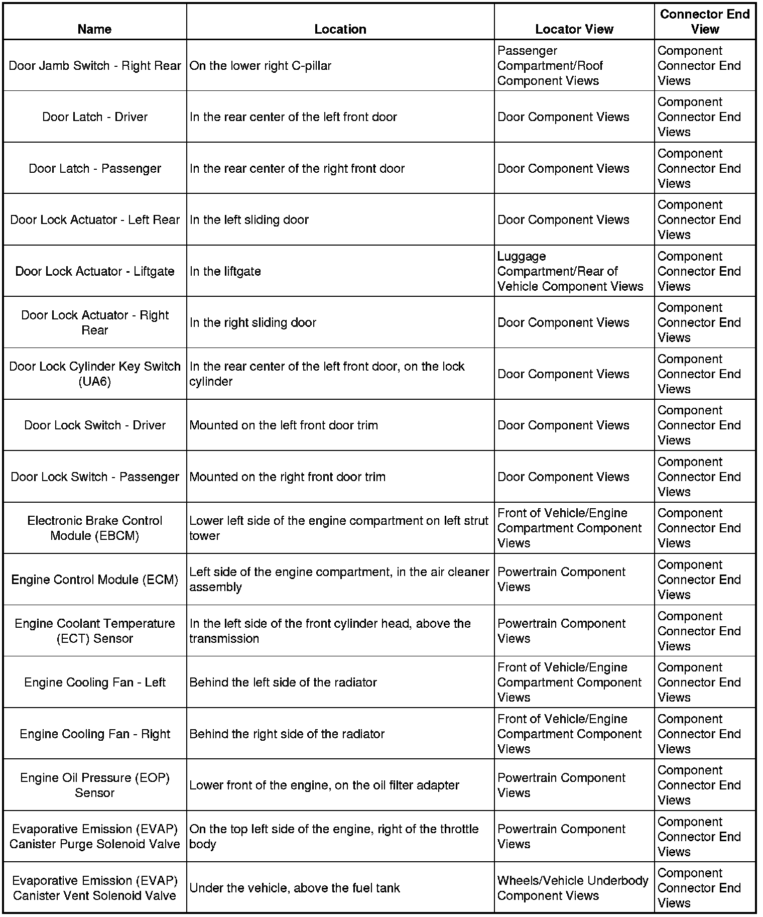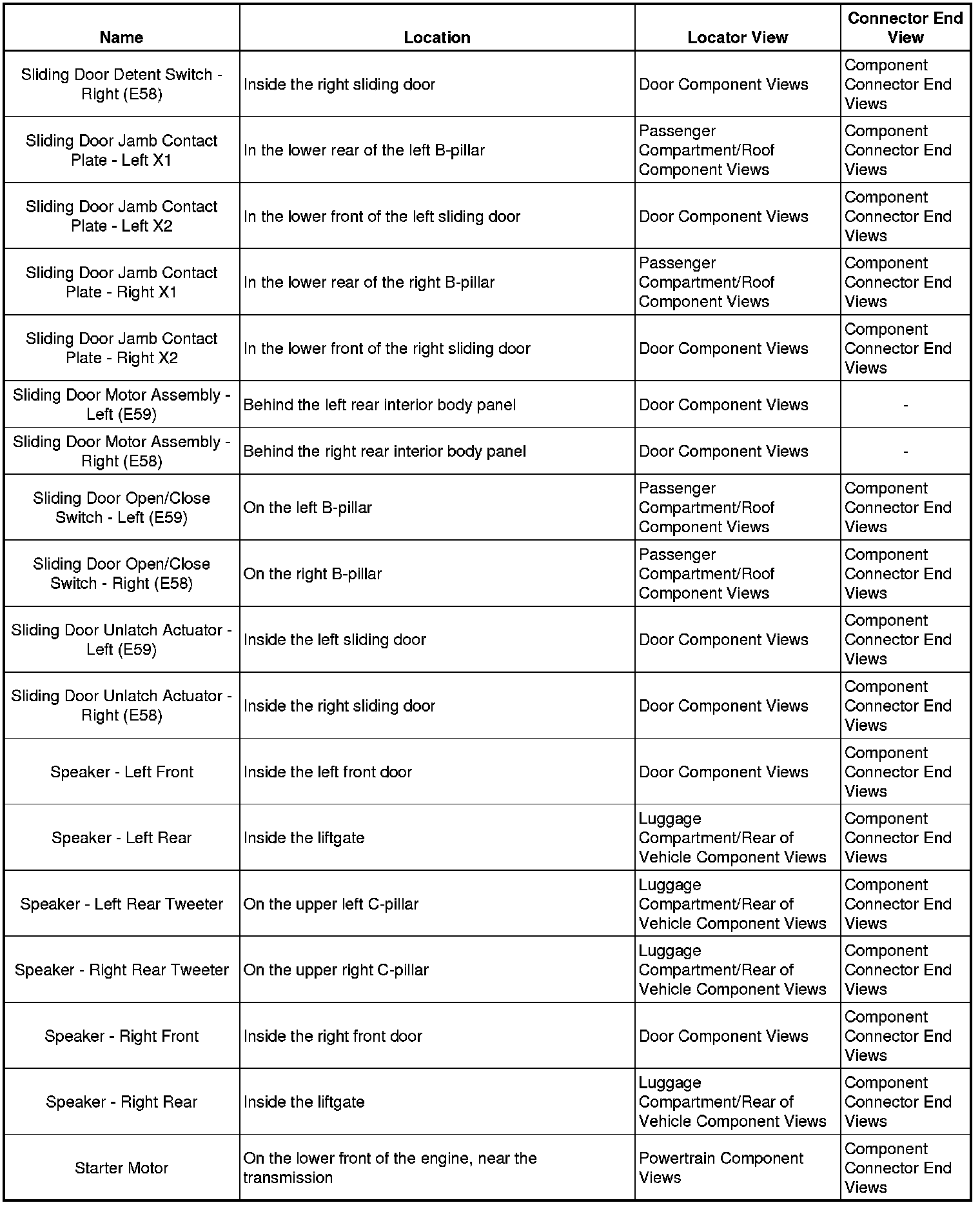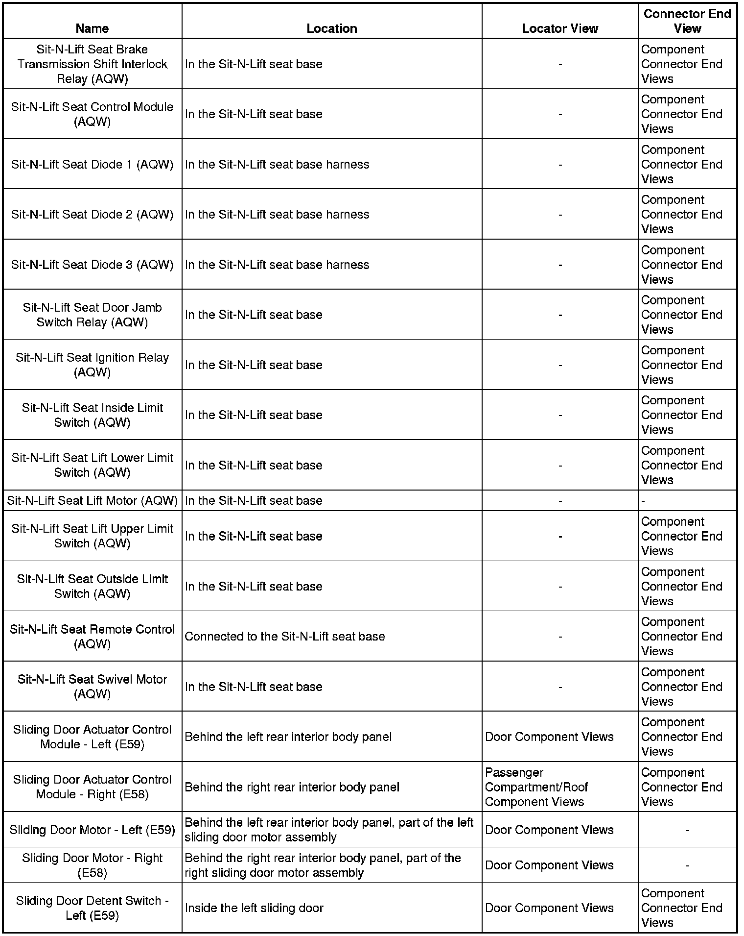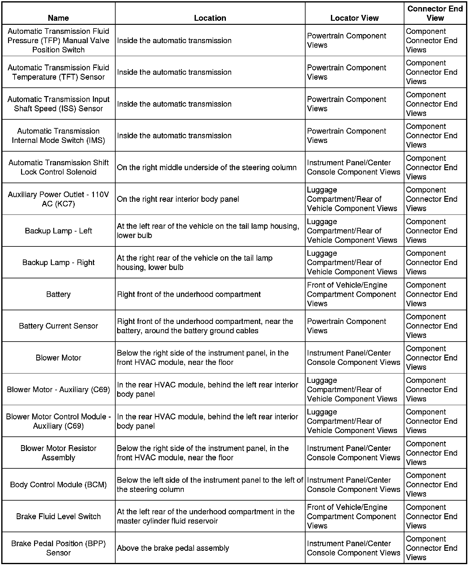 Master Electrical Component List
