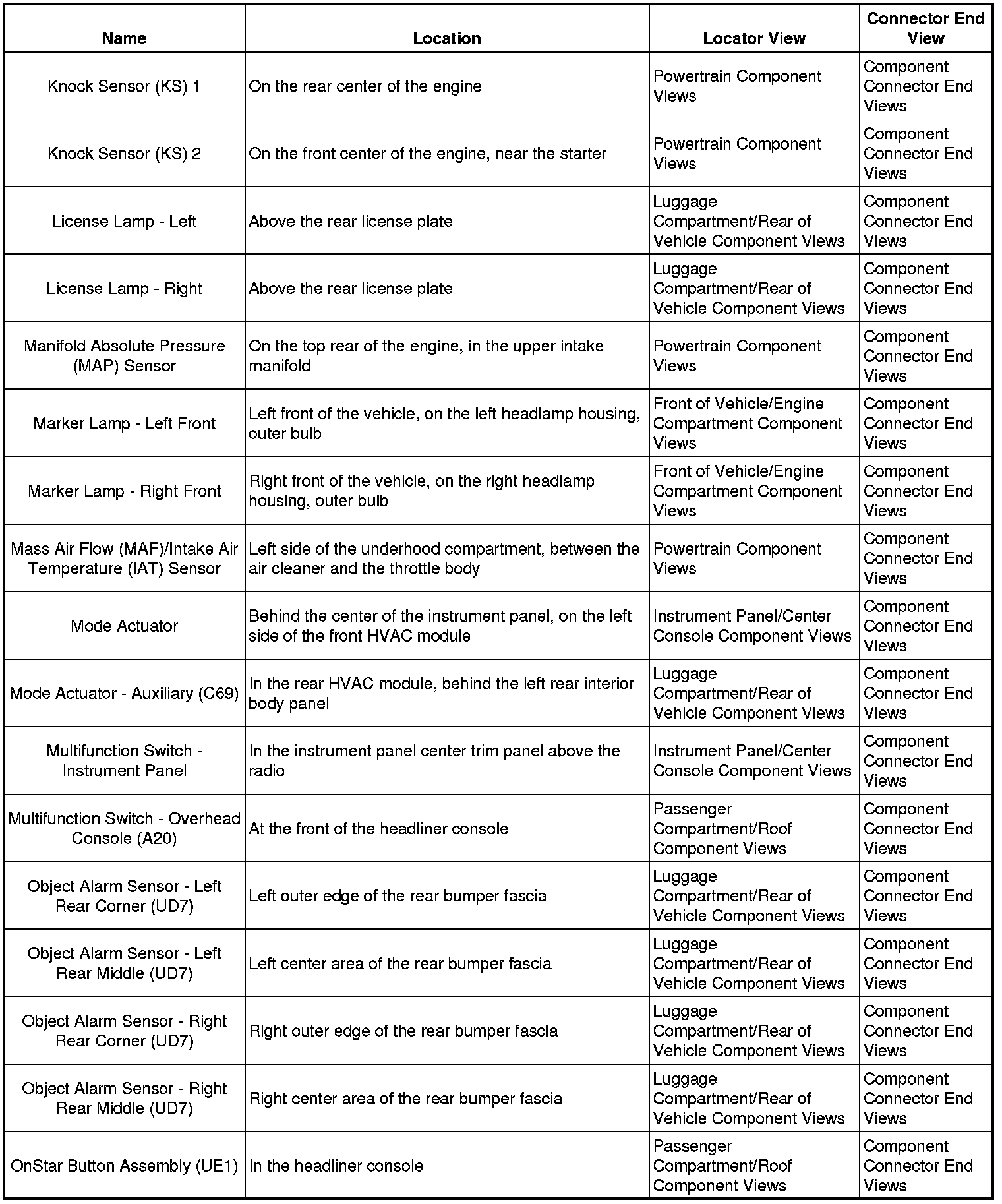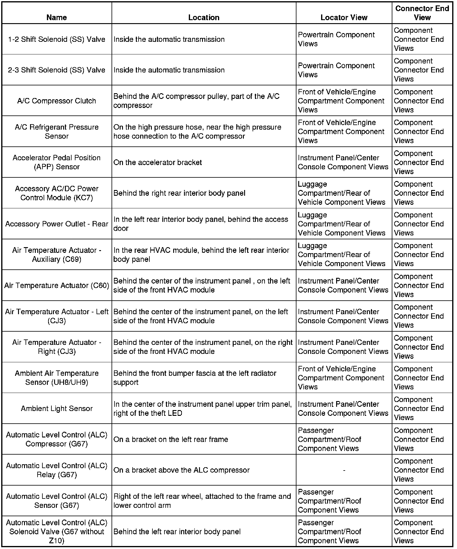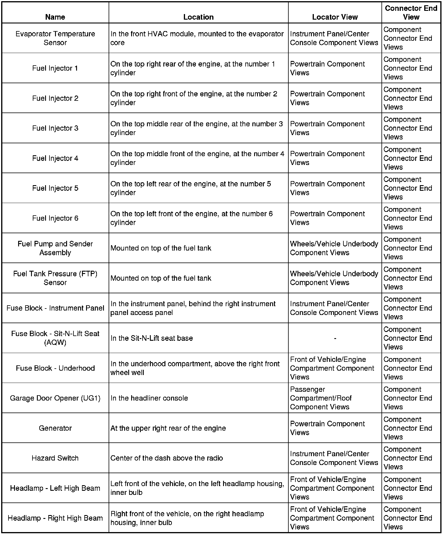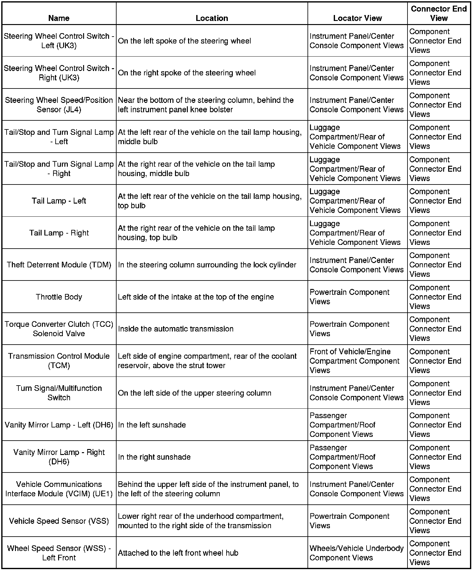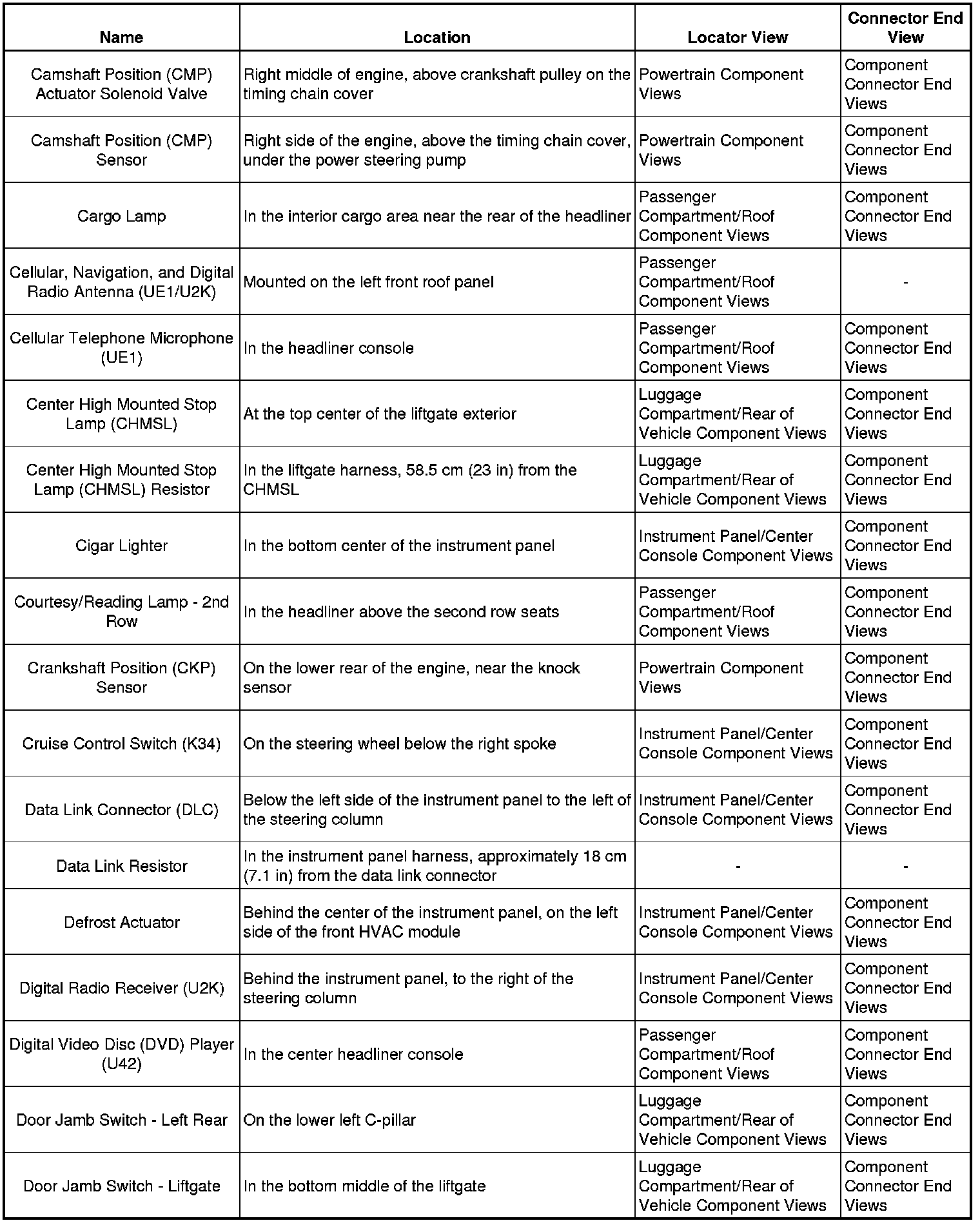 Master Electrical Component List
