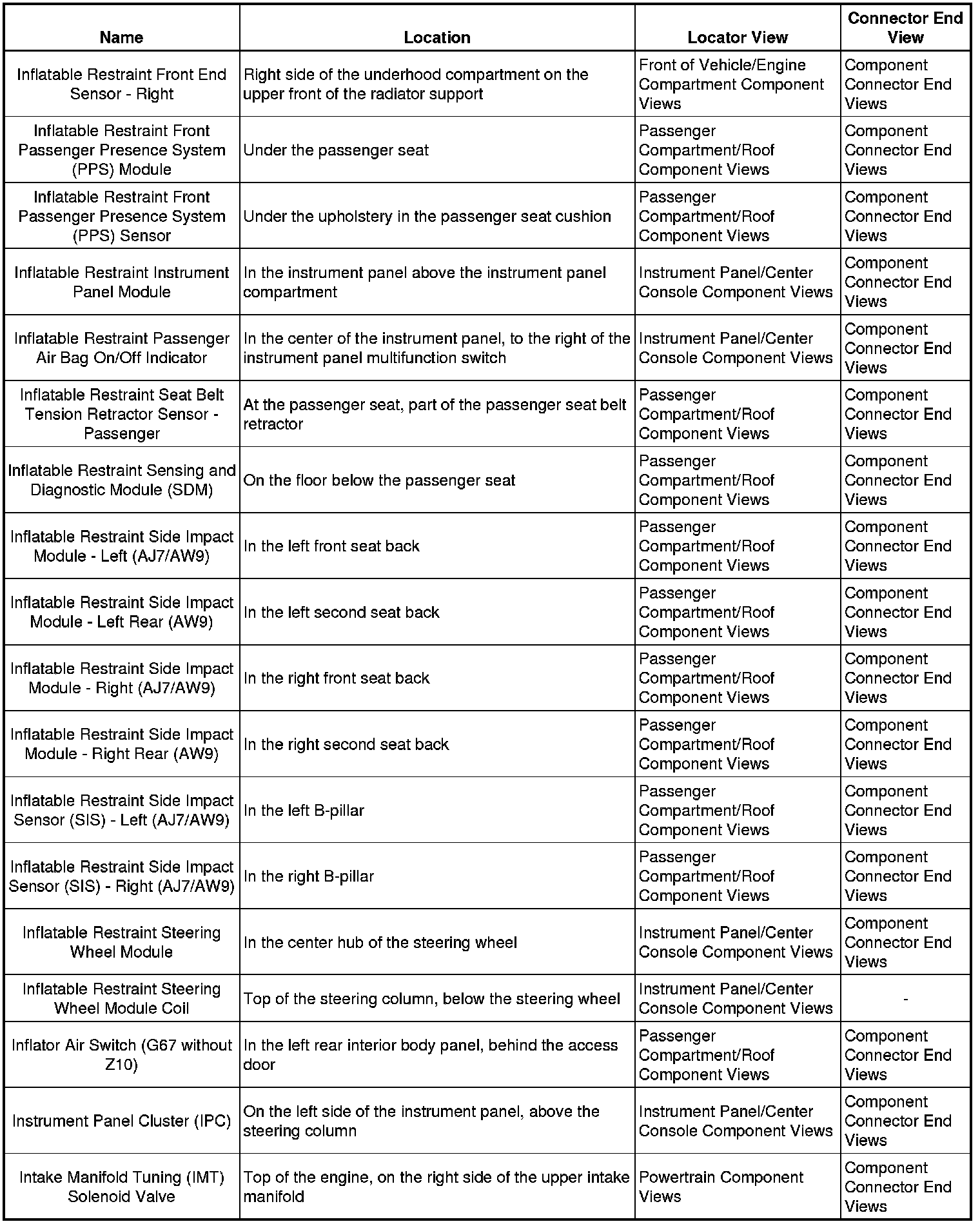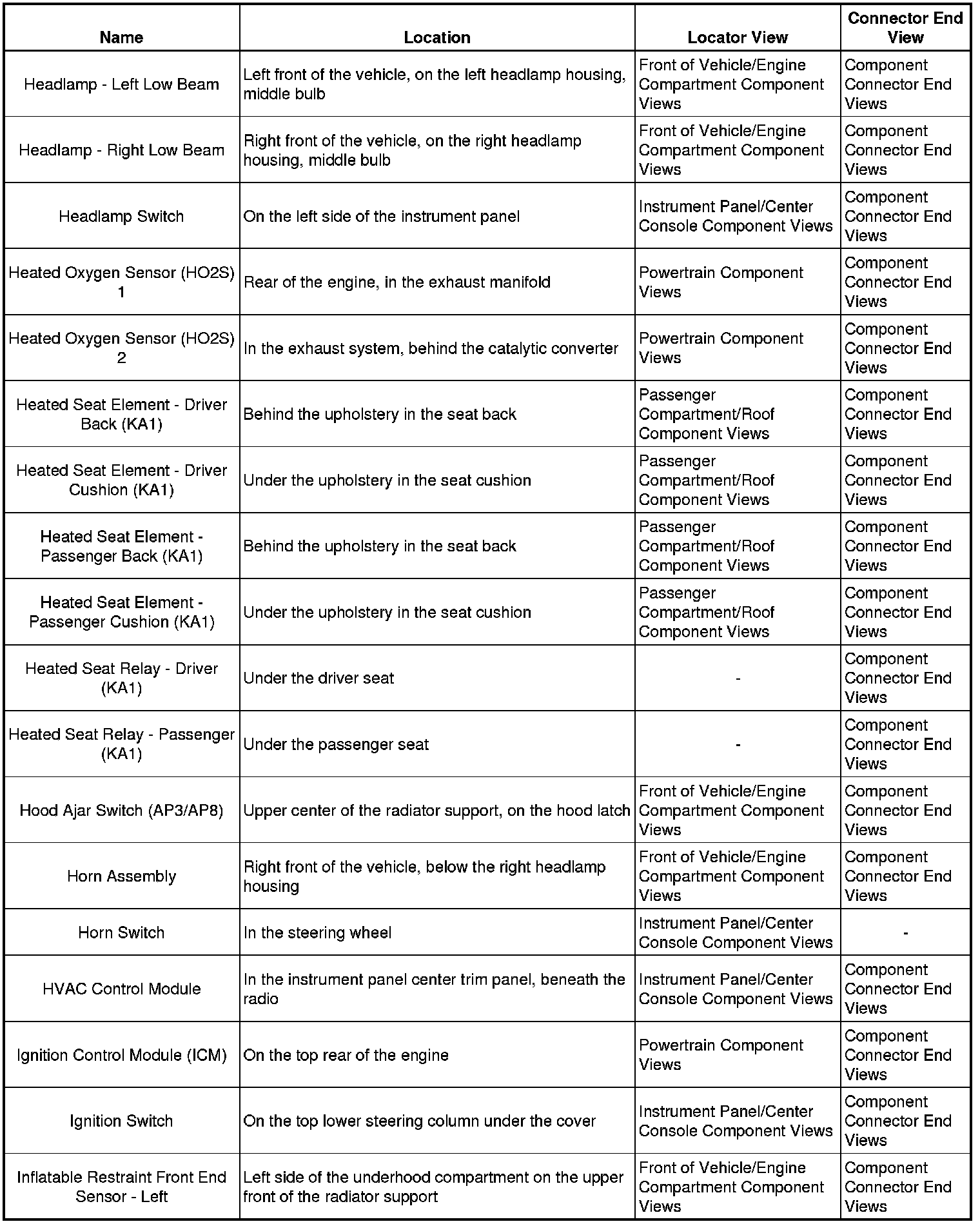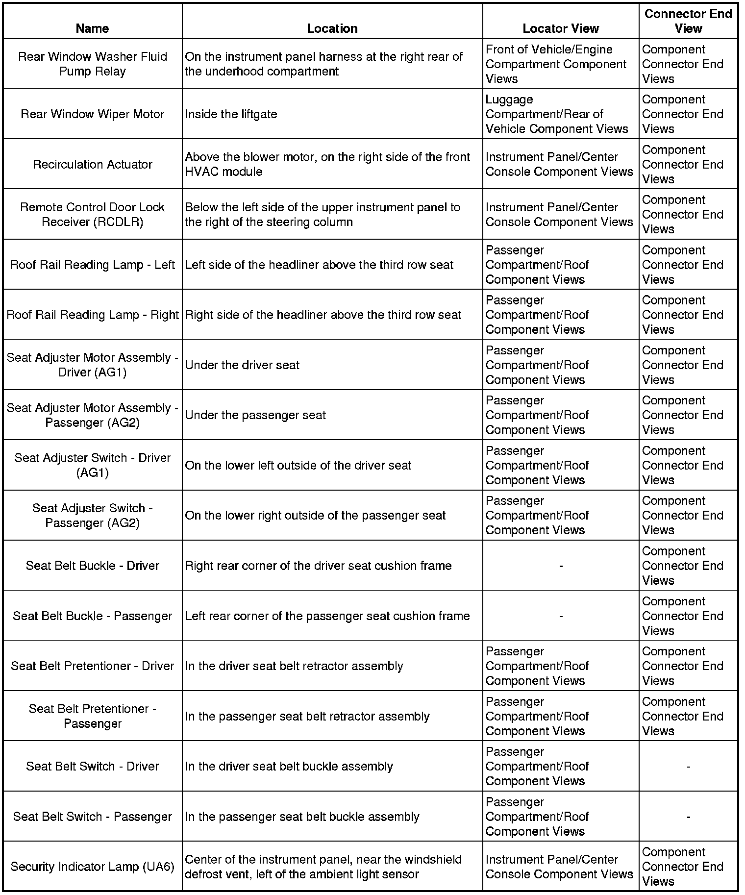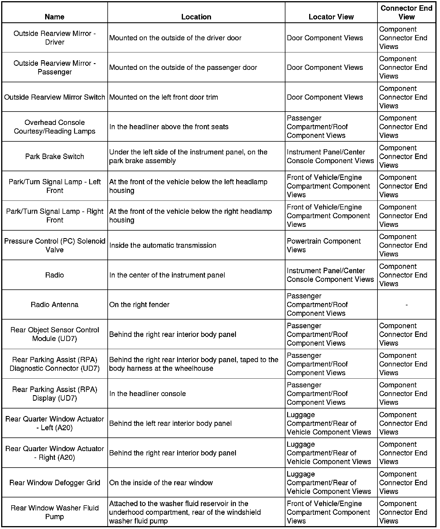 Master Electrical Component List