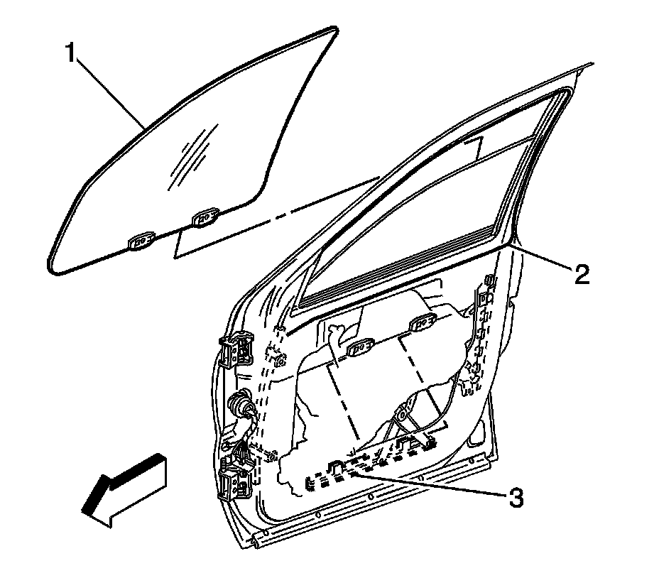 2. Remove the water deflector. Refer to Front Side Door Water Deflector Replacement Front Side Door Water Deflector Replacement.