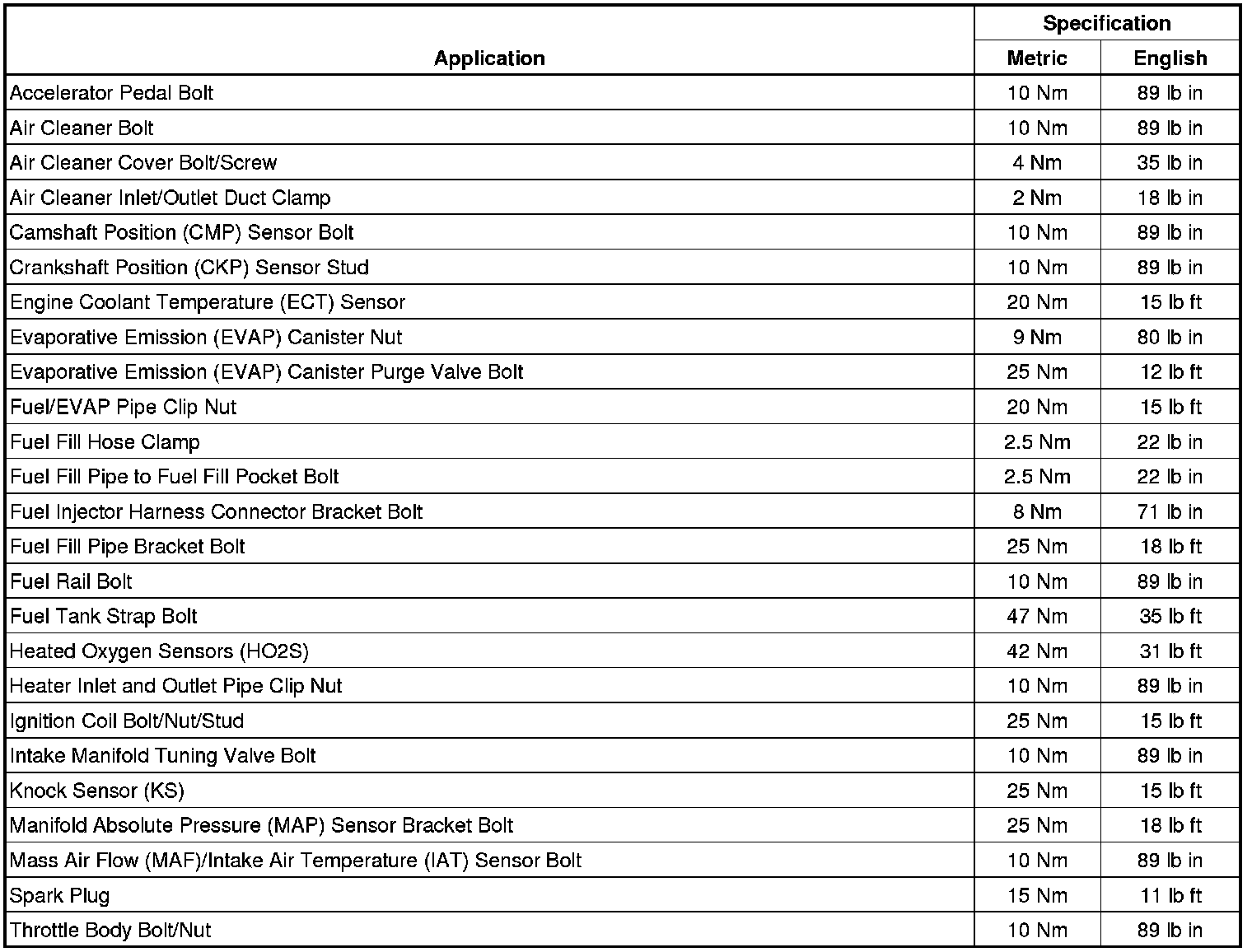 Fastener Tightening Specifications