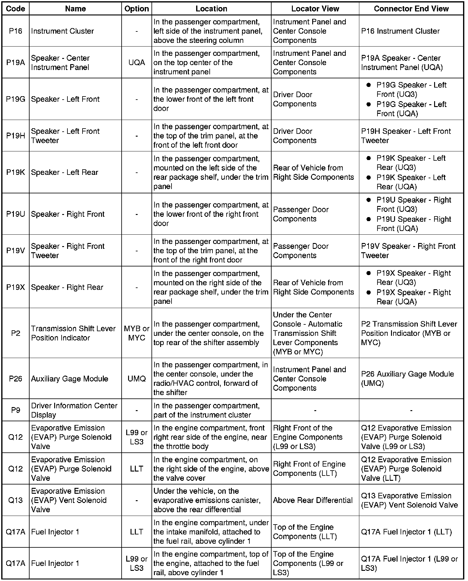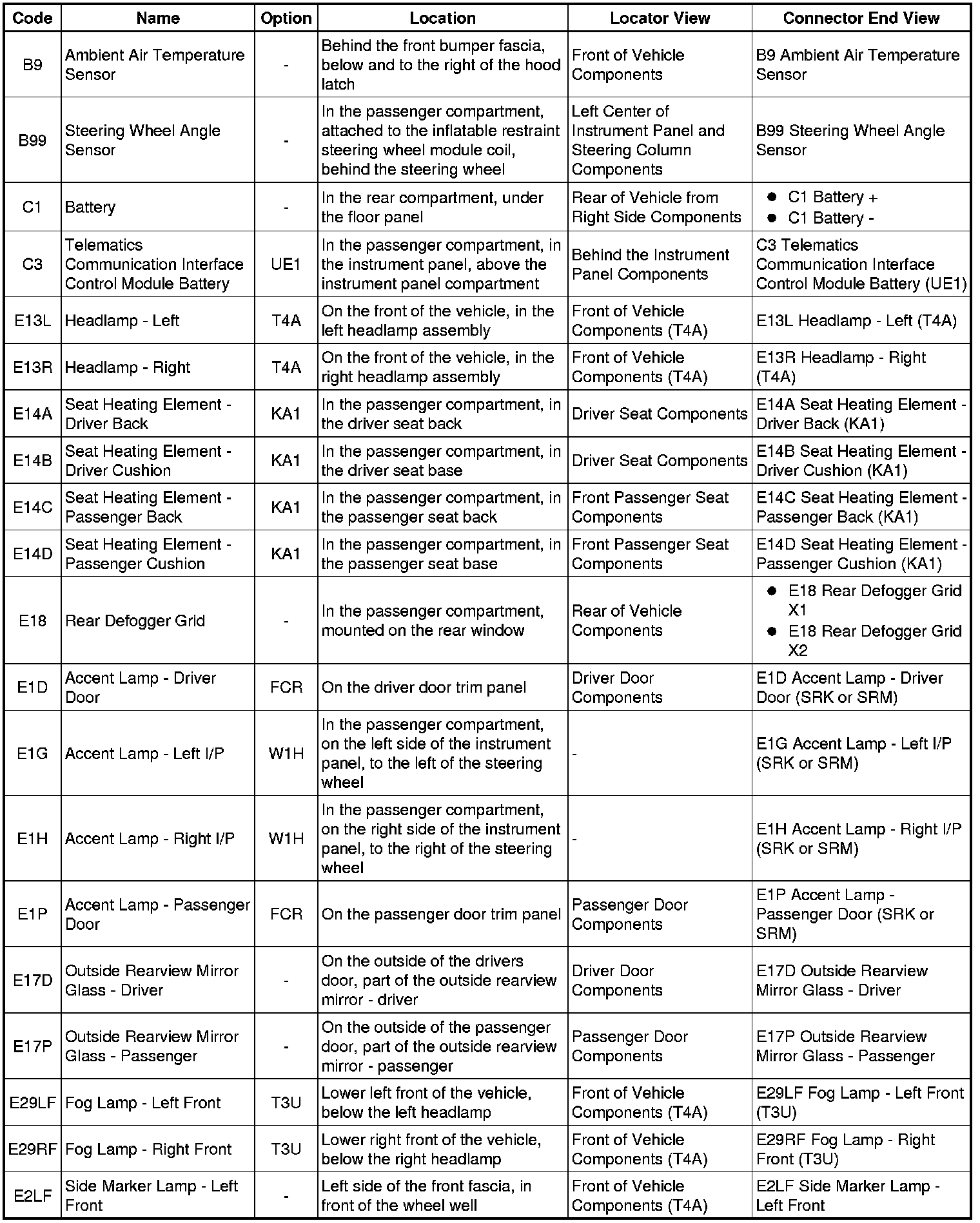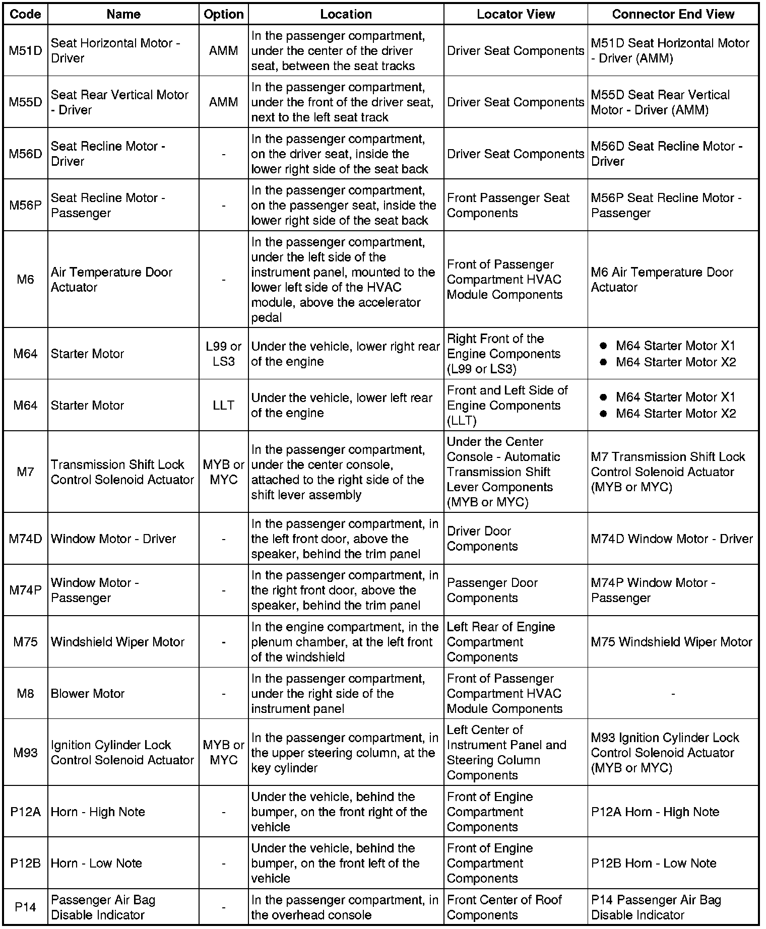 Master Electrical Component List