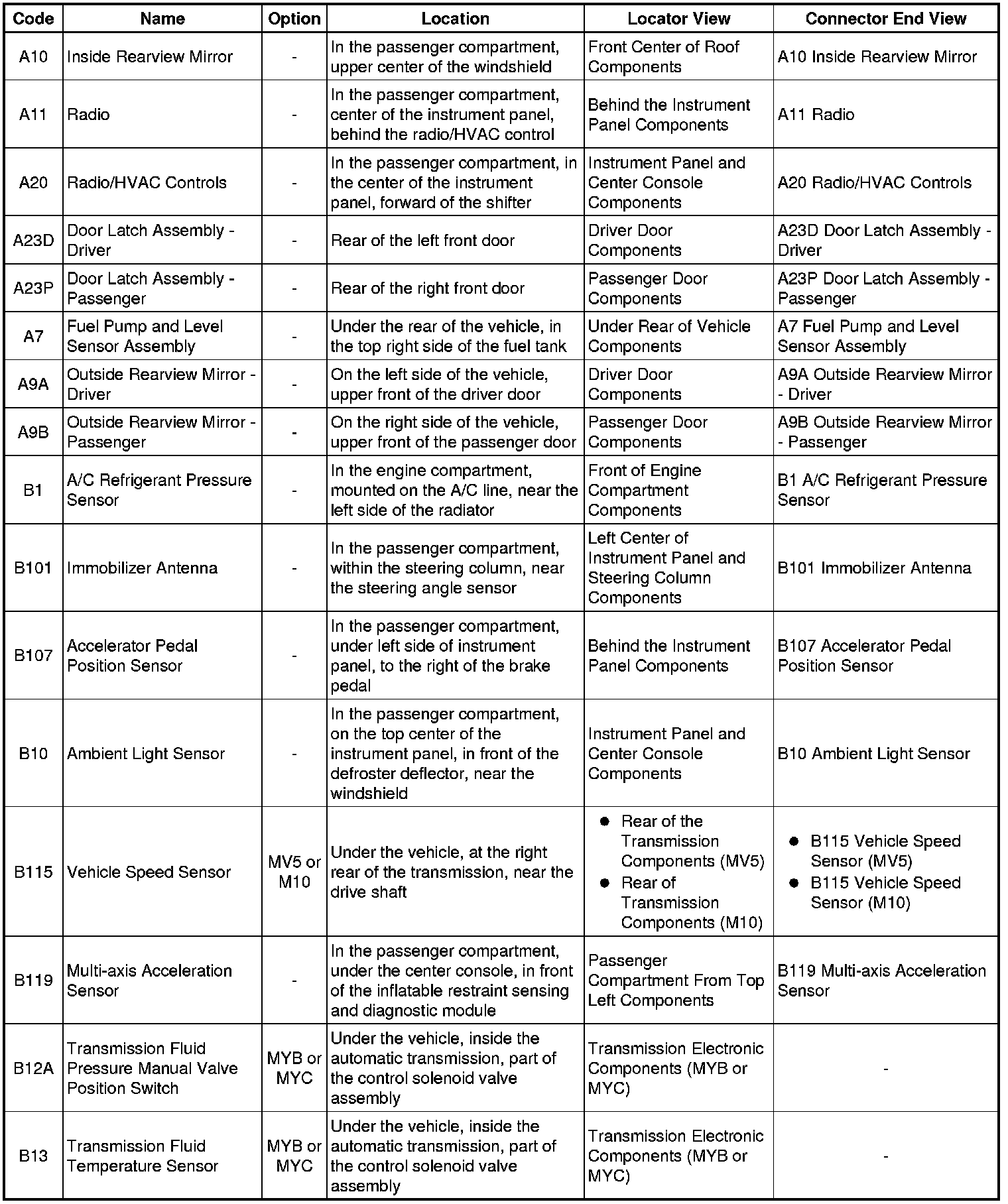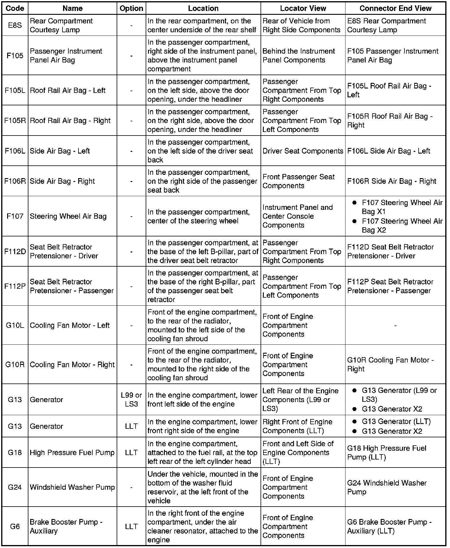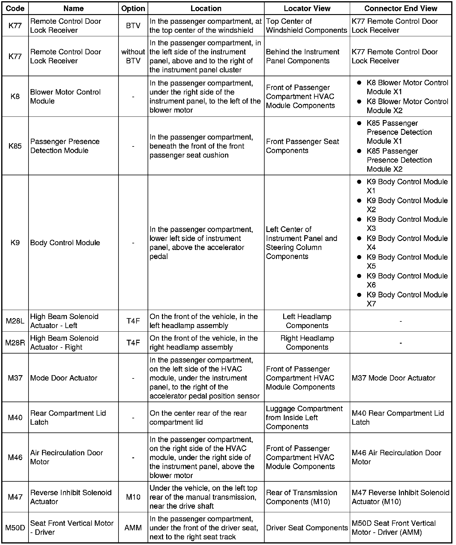 Master Electrical Component List