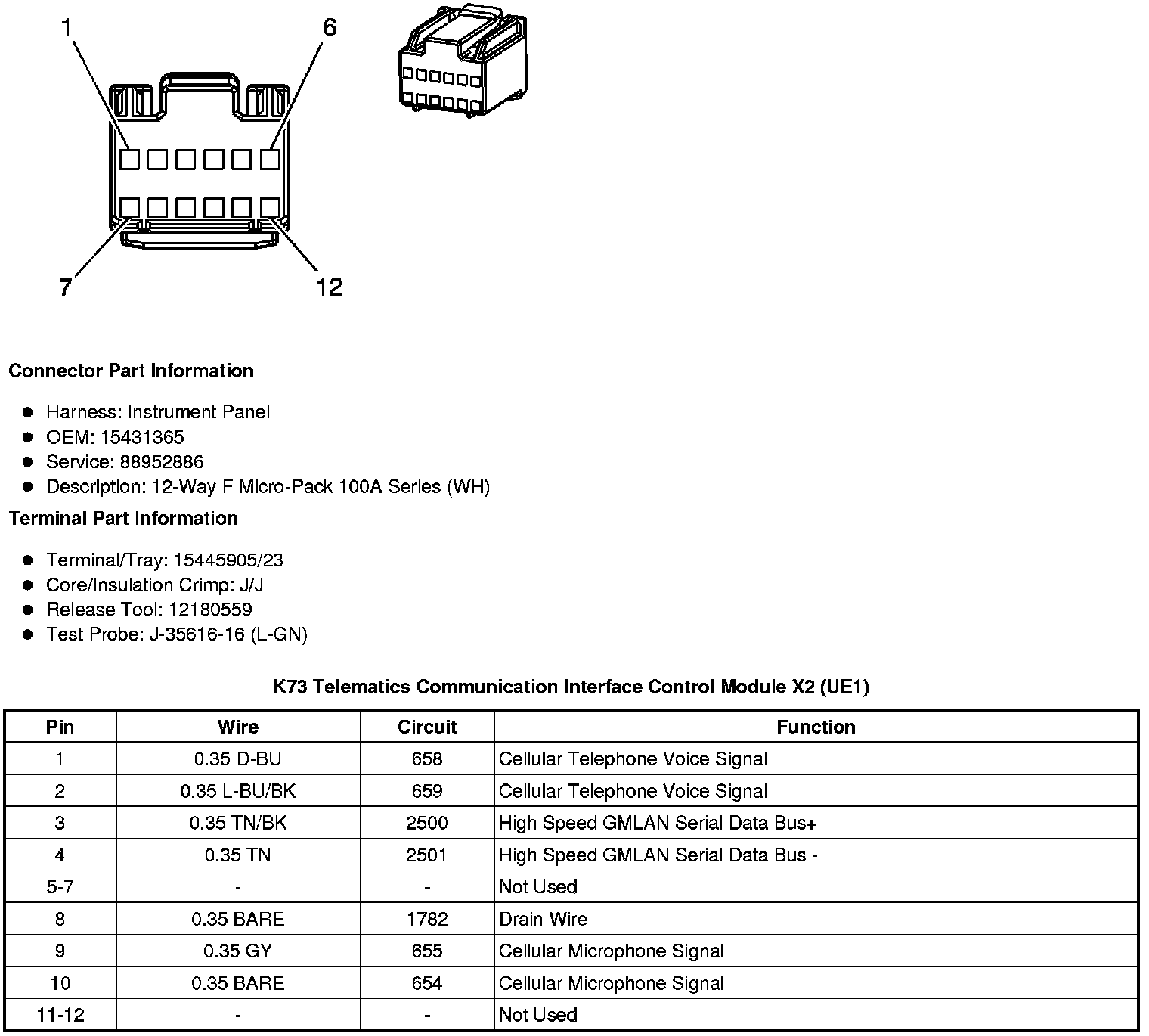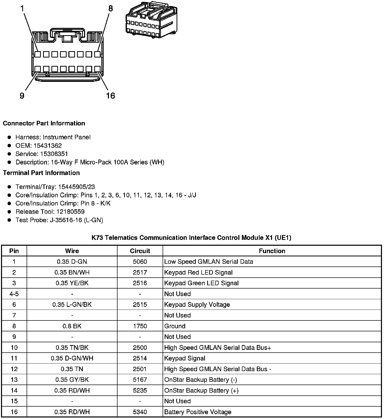 K73 Telematics Communication Interface Control Module X2 (UE1)