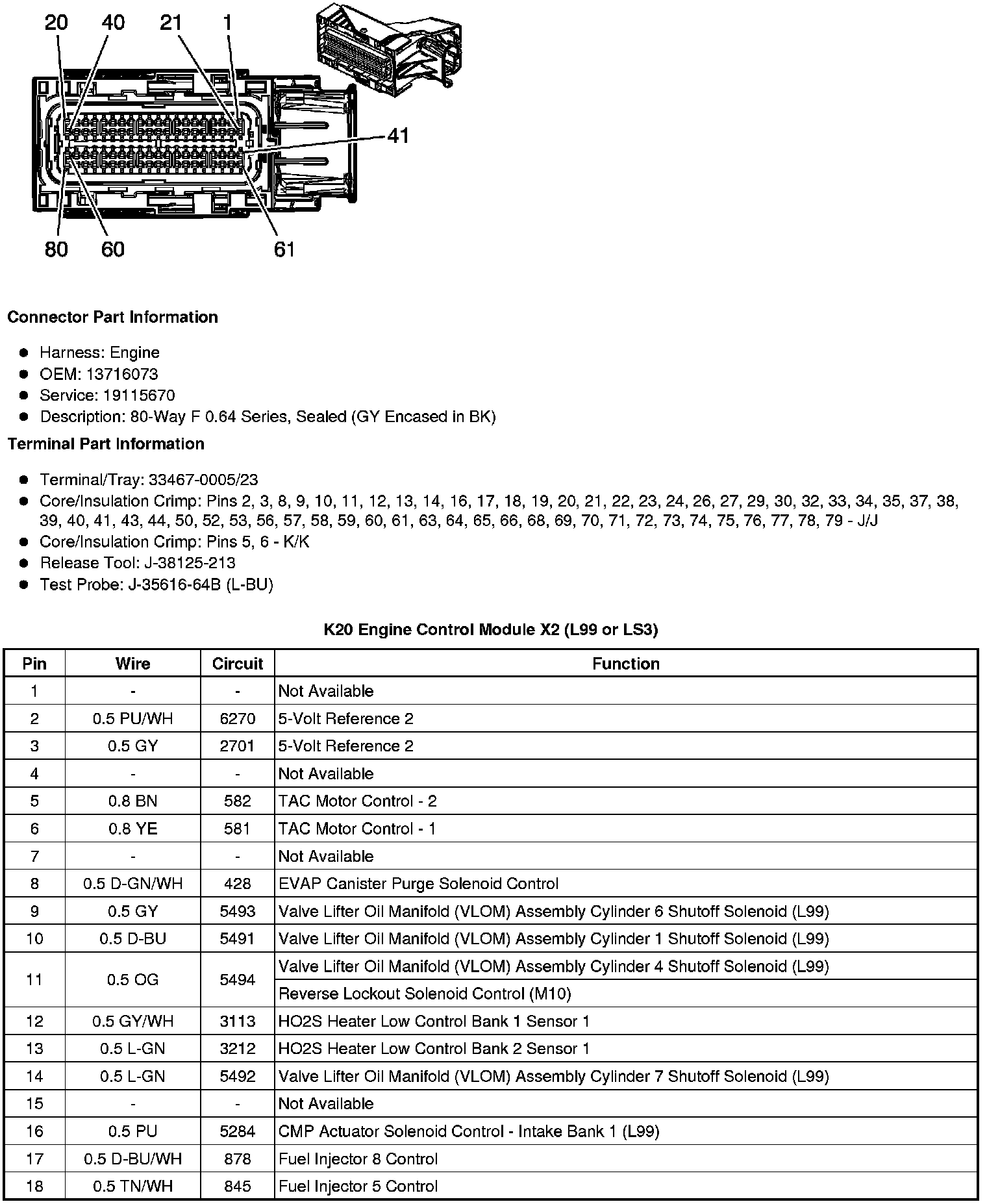 RPO L99 - Engine VIN J, Gas 8 Cylinder, 6.2L, SFI, Aluminum, GM