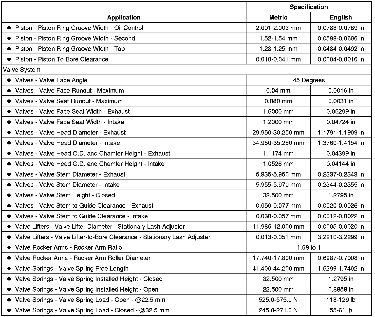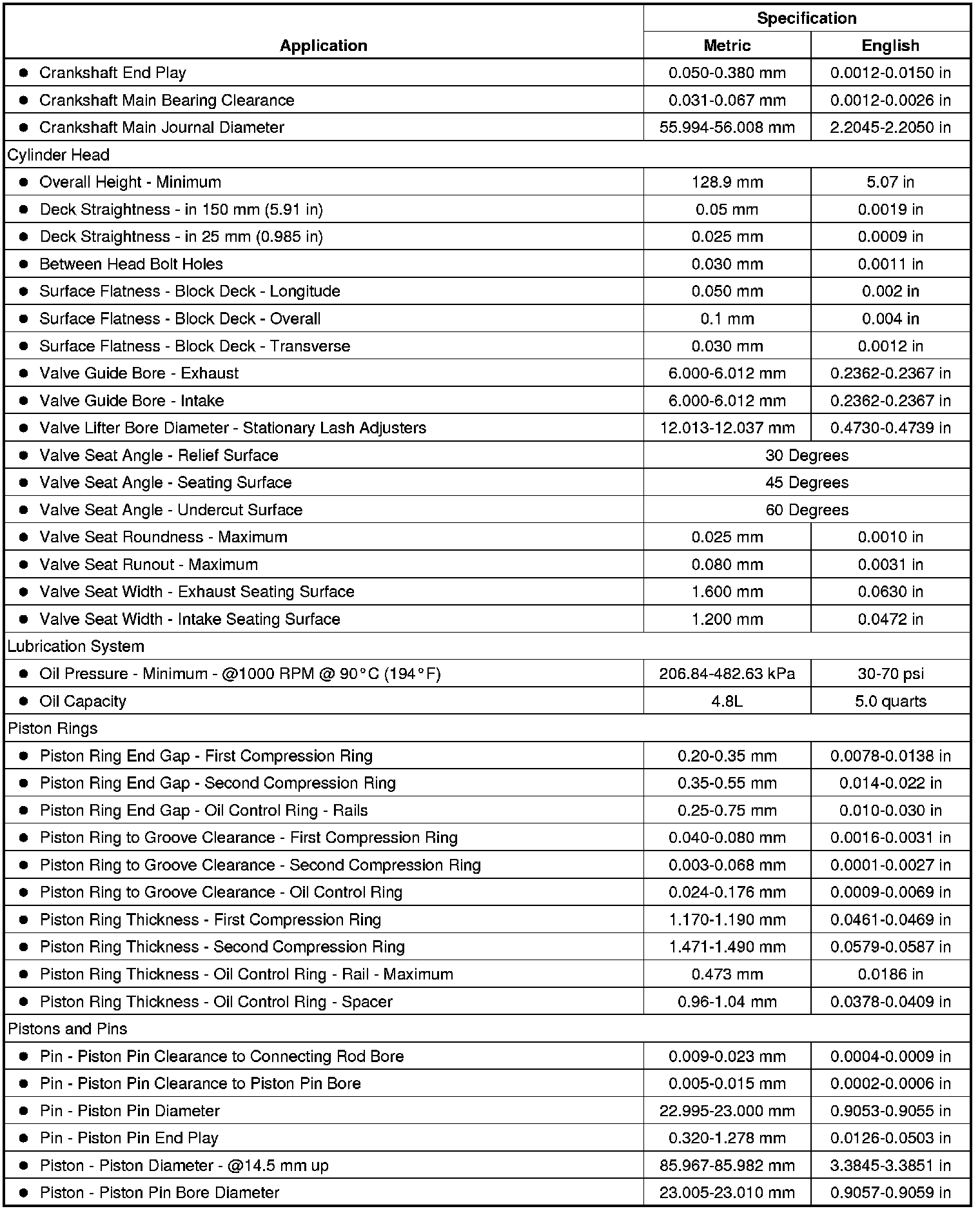 Engine Mechanical Specifications