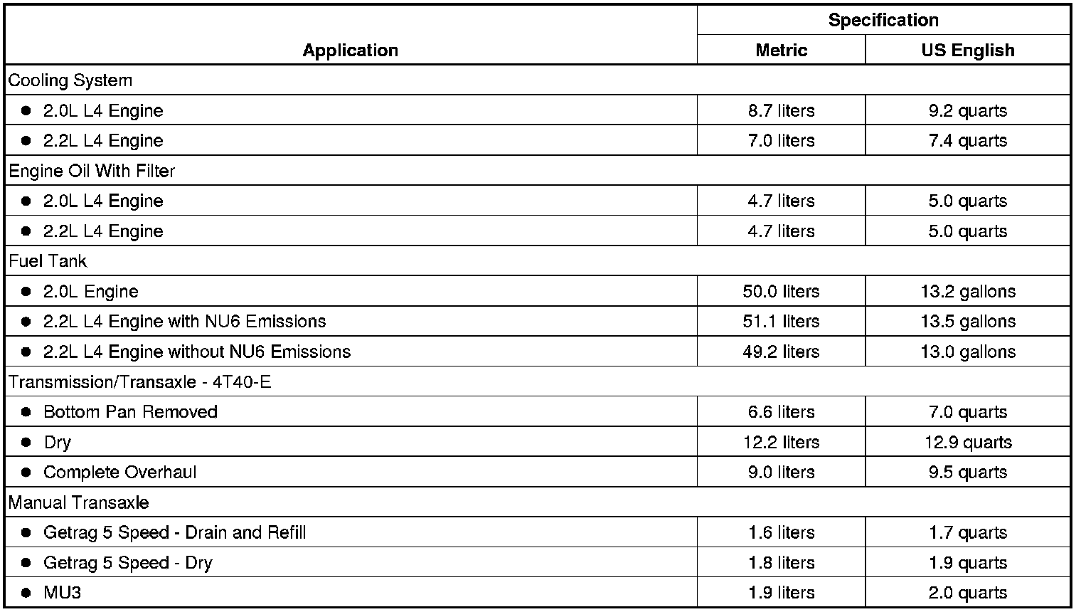 Home >> Chevrolet >> 2010 >> Cobalt L4-2.2L >> Repair and Diagnosis >> Maintenance >> Specifications