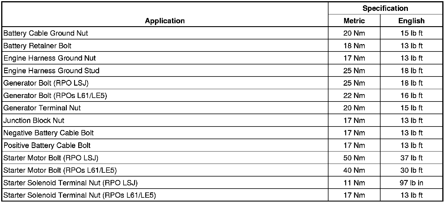 Starting and Charging: Specifications