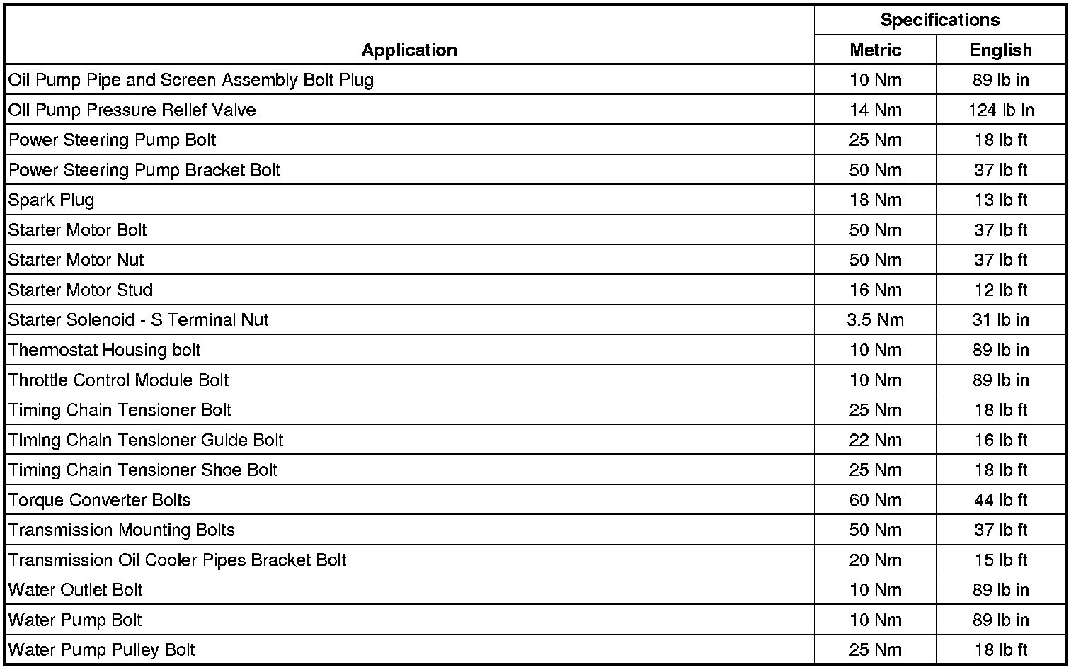 Fastener Tightening Specifications