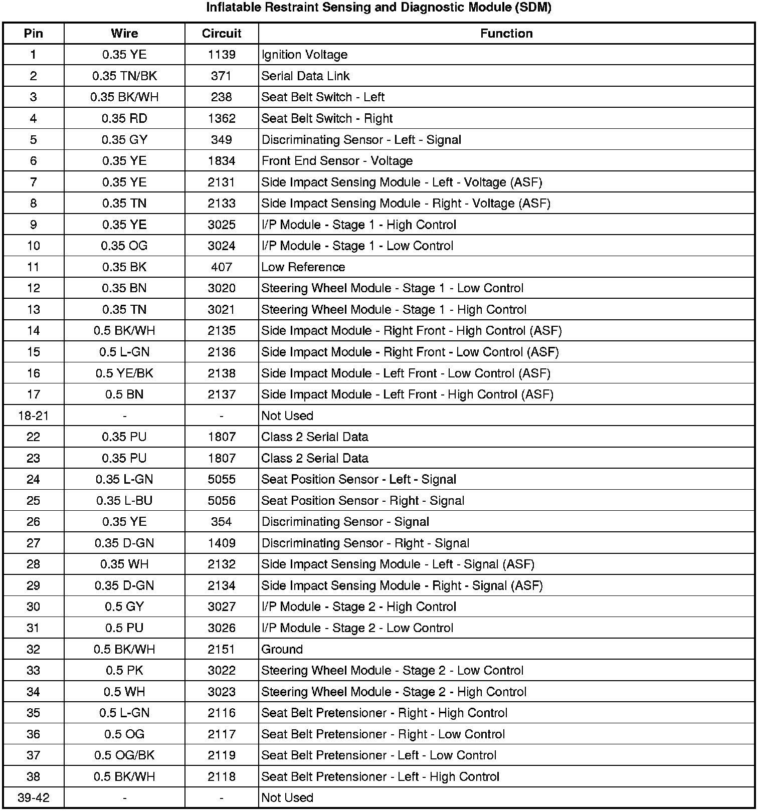Inflatable Restraint Sensing and Diagnostic Module (SDM)