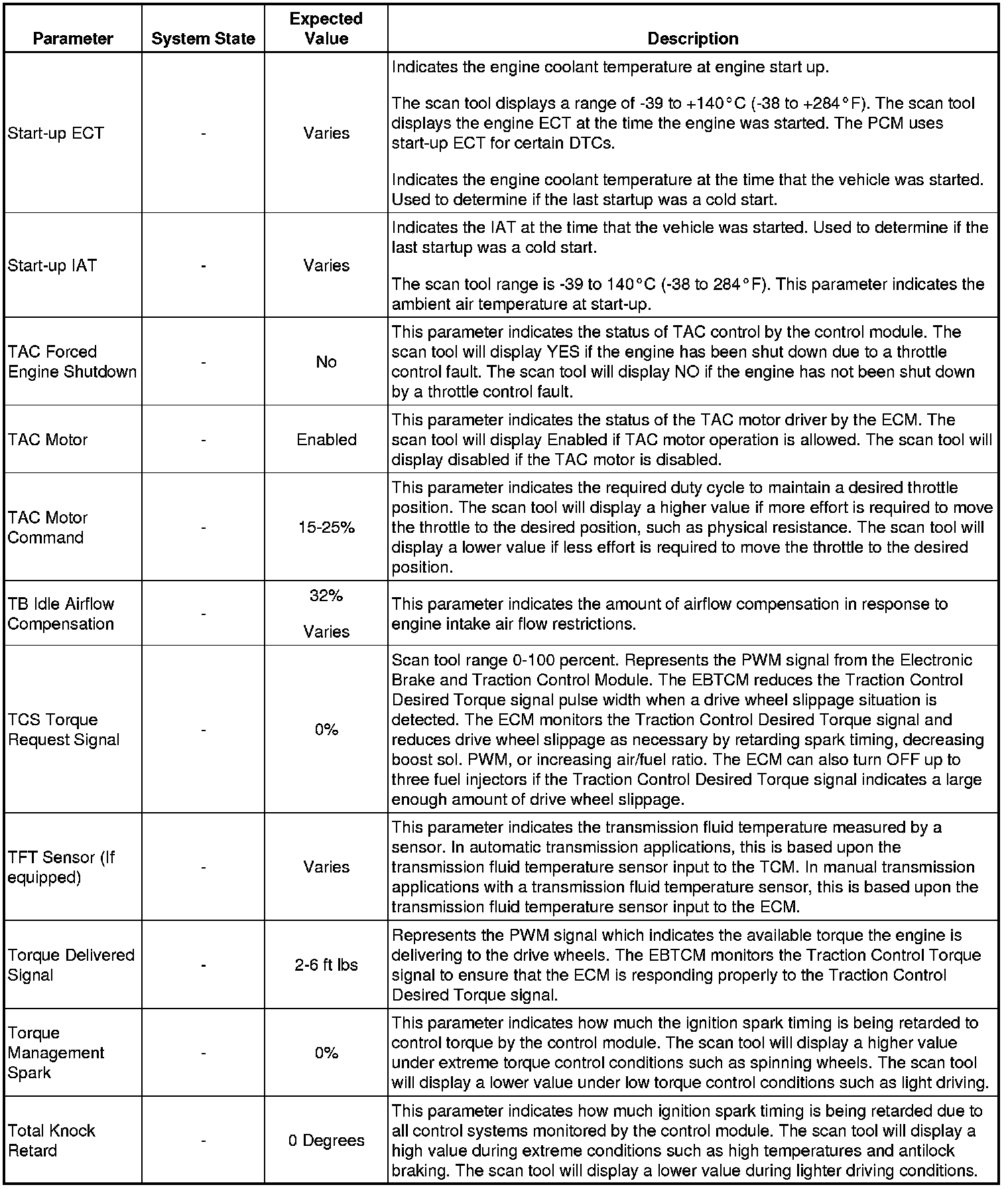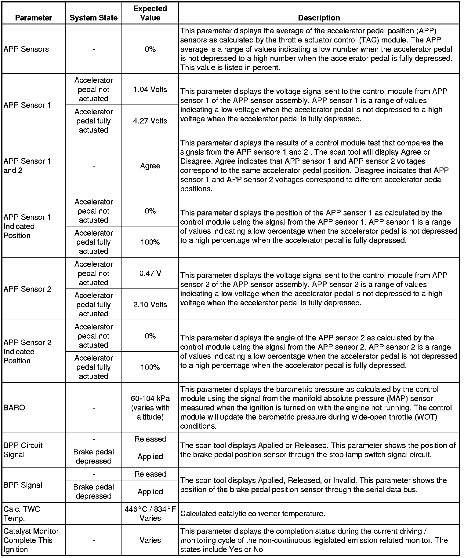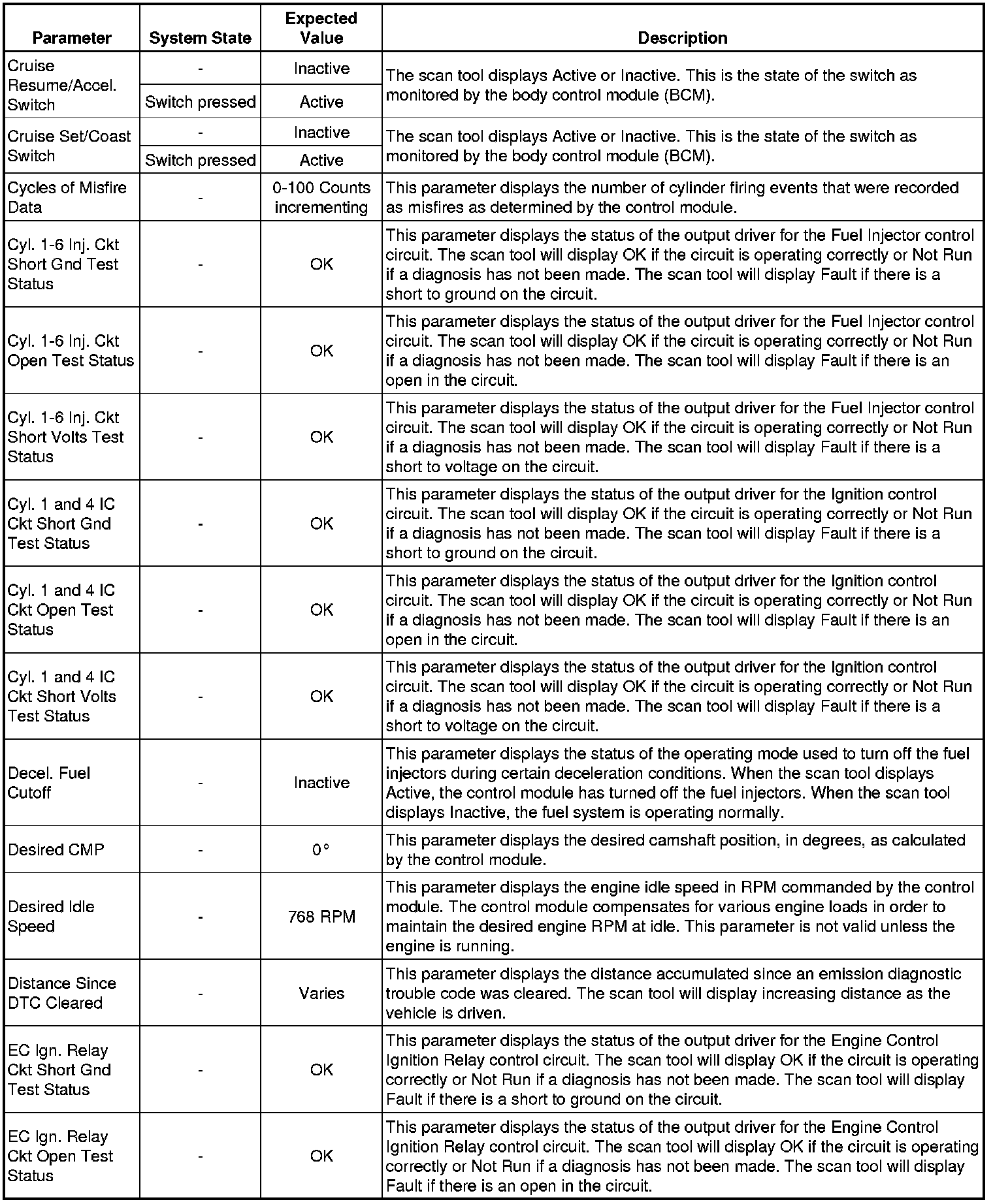 Only the parameters listed below are referenced in this service manual for use in diagnosis. If all values are within the typical range described below, refer to Symptoms - Engine Controls (Symptoms - Engine Controls) for the 2.9L engine or Symptoms - Engine Controls (Symptoms - Engine Controls) for the 3.7L engine for diagnosis.