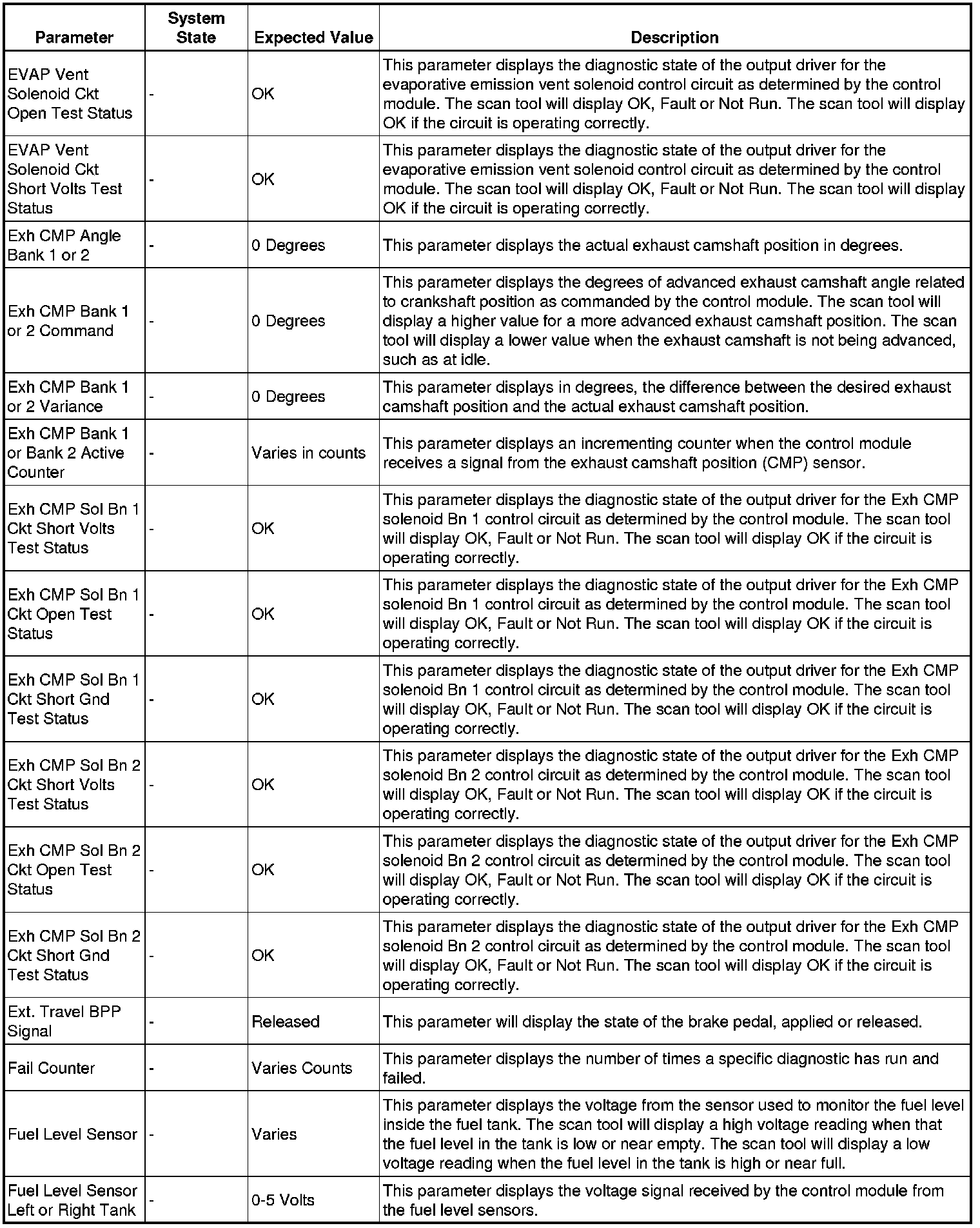 The Engine Control Module Scan Tool Data List contains all engine-related parameters that are available on the scan tool. The list is arranged in alphabetical order. A given parameter may appear in any one of the data lists, and in some cases may appear more than once, or in more than one data list in order to group certain related parameters together.