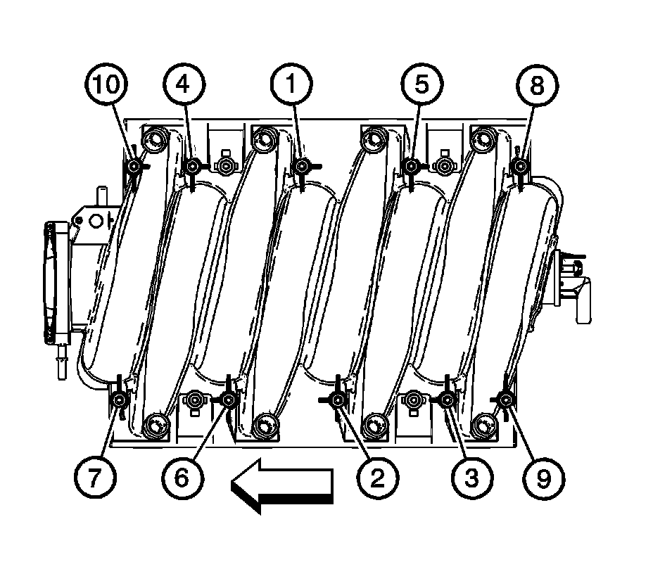 Bolts (1-10) first pass 5 Nm (44 lb in)