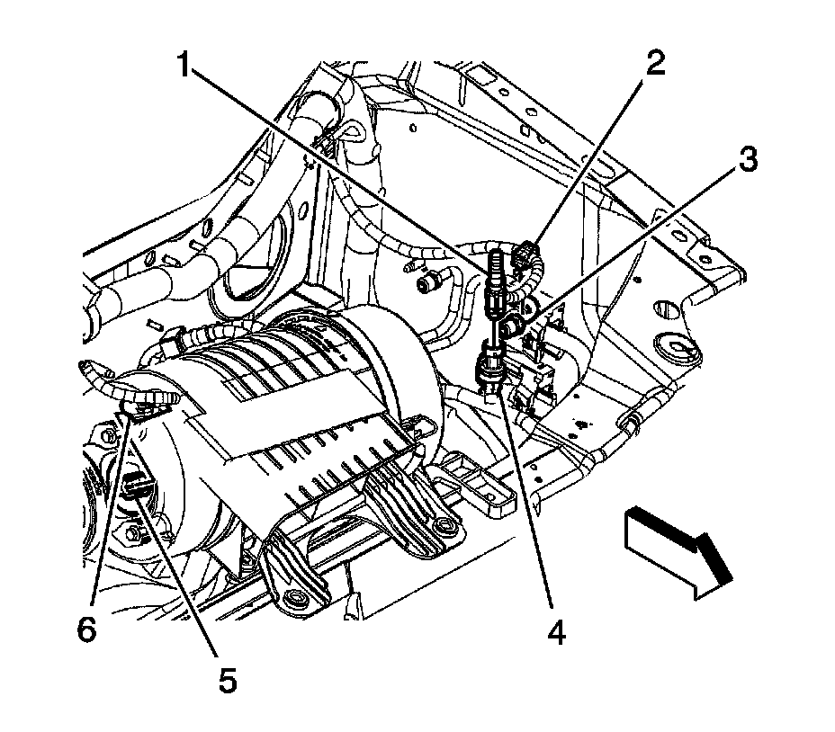 3. Disconnect the engine wiring harness electrical connector (6) from the MAF/IAT sensor (5).