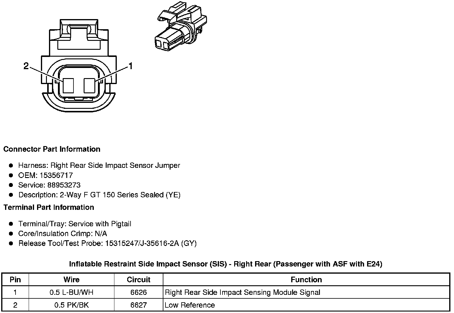 Inflatable Restraint Side Impact Sensor (SIS) - Right Rear (Passenger with ASF with E24)