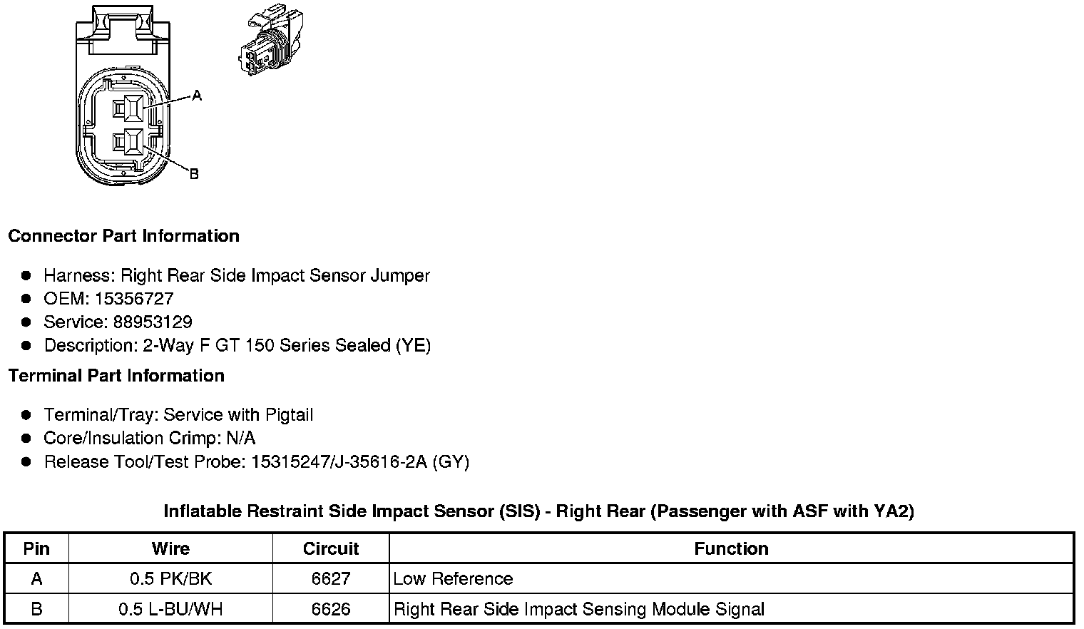 Inflatable Restraint Side Impact Sensor (SIS) - Right Rear (Passenger with ASF with YA2)