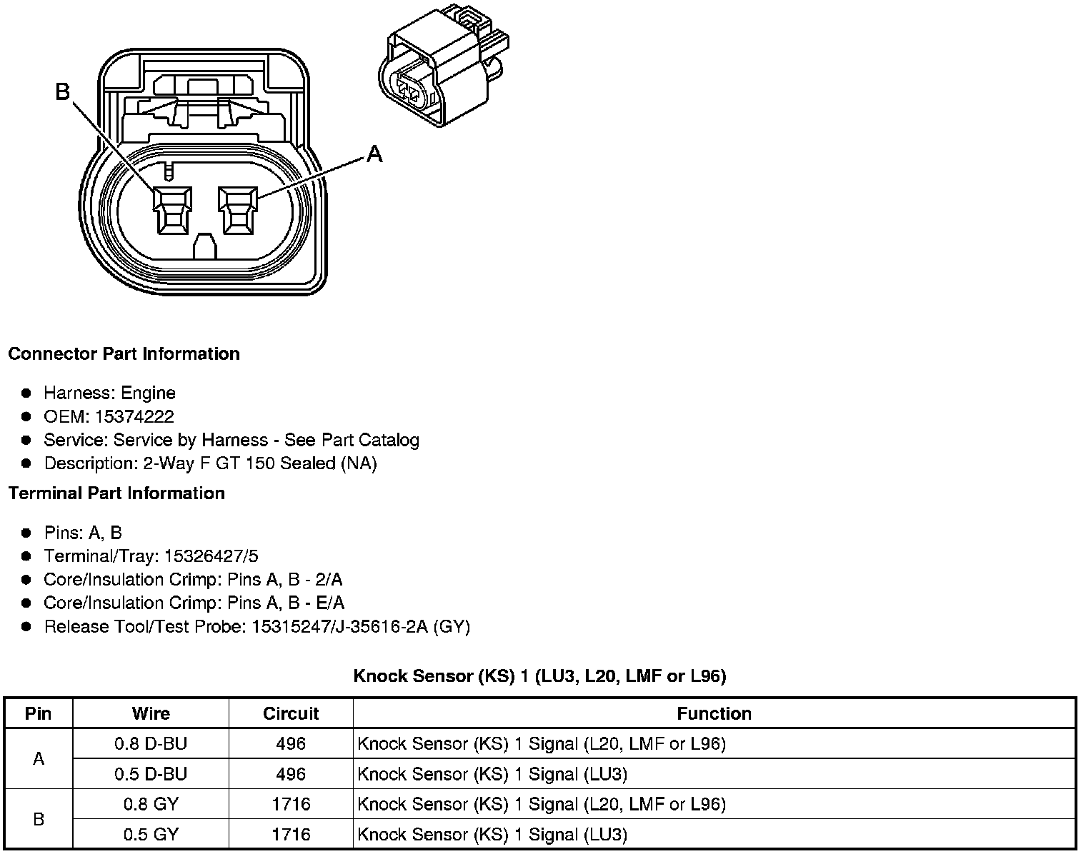 Knock Sensor (KS) 1 (LU3, L20, LMF or L96)
