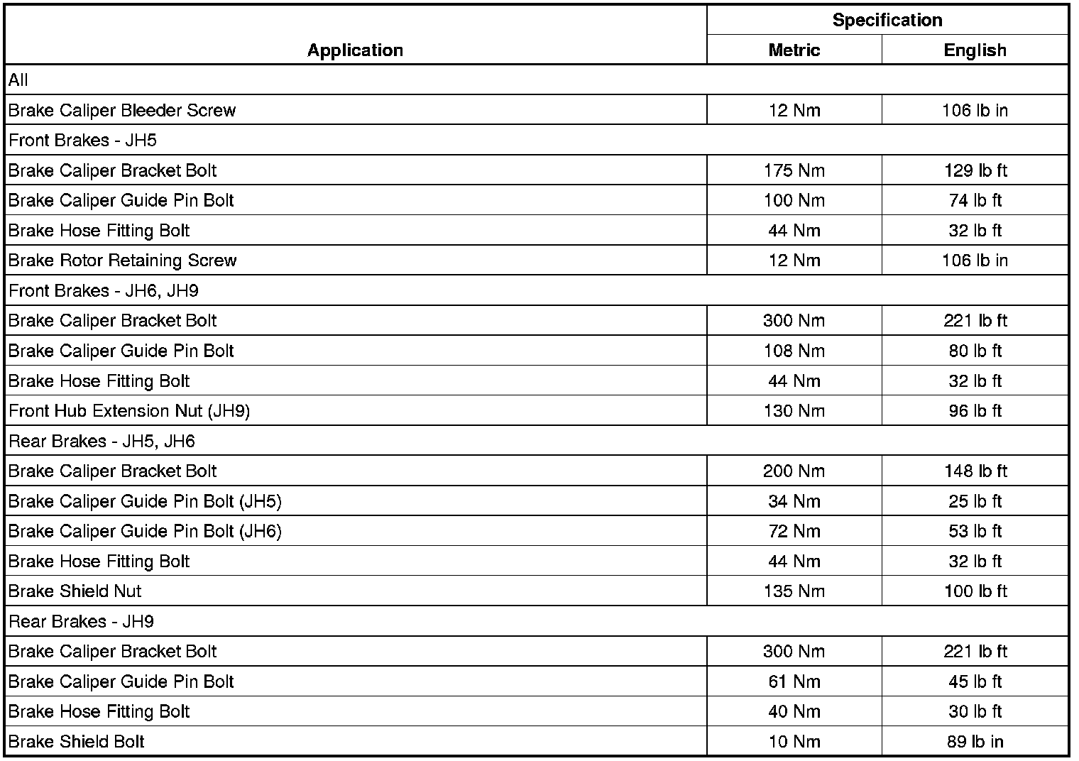 Fastener Tightening Specifications