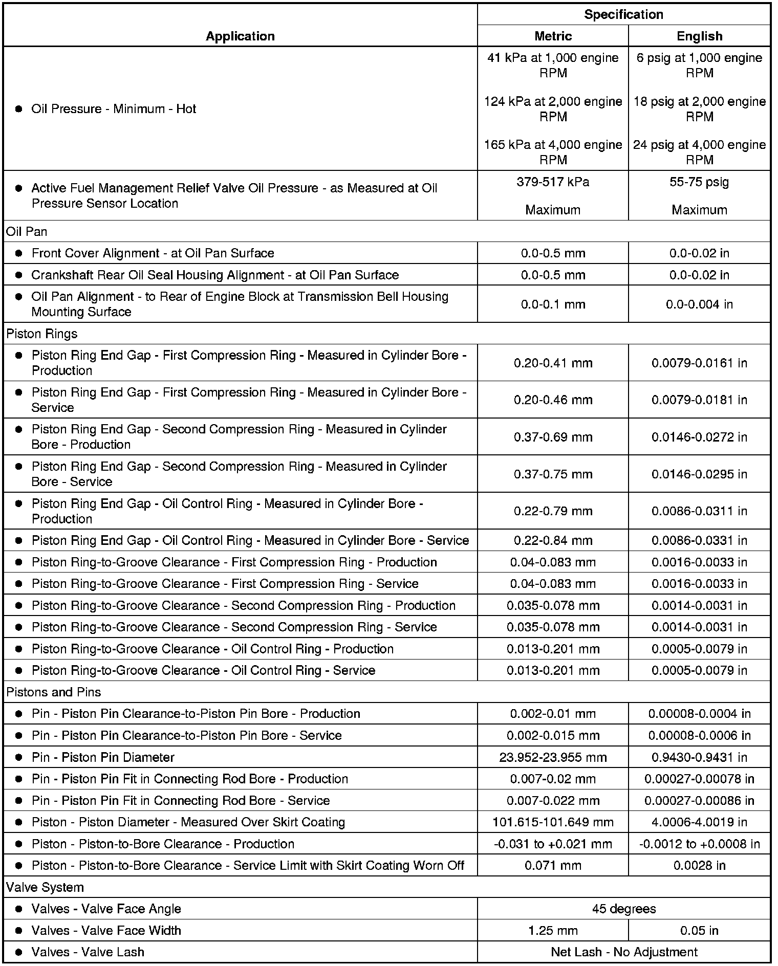 Engine Mechanical Specifications (RPO L96 VIN G)