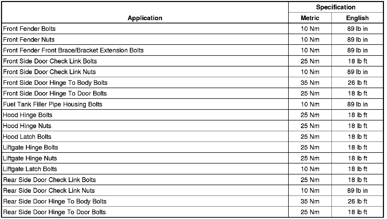 Fastener Tightening Specifications