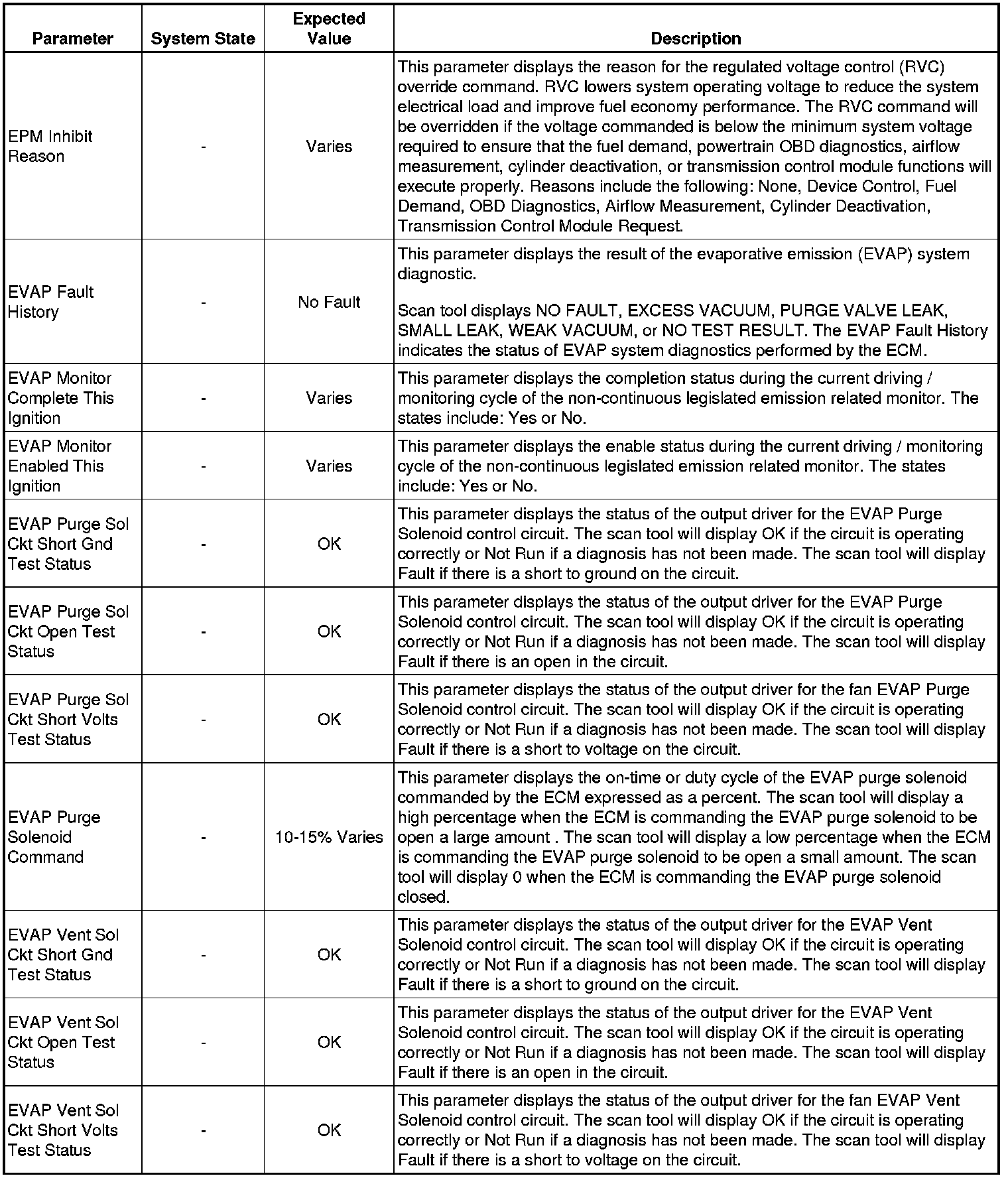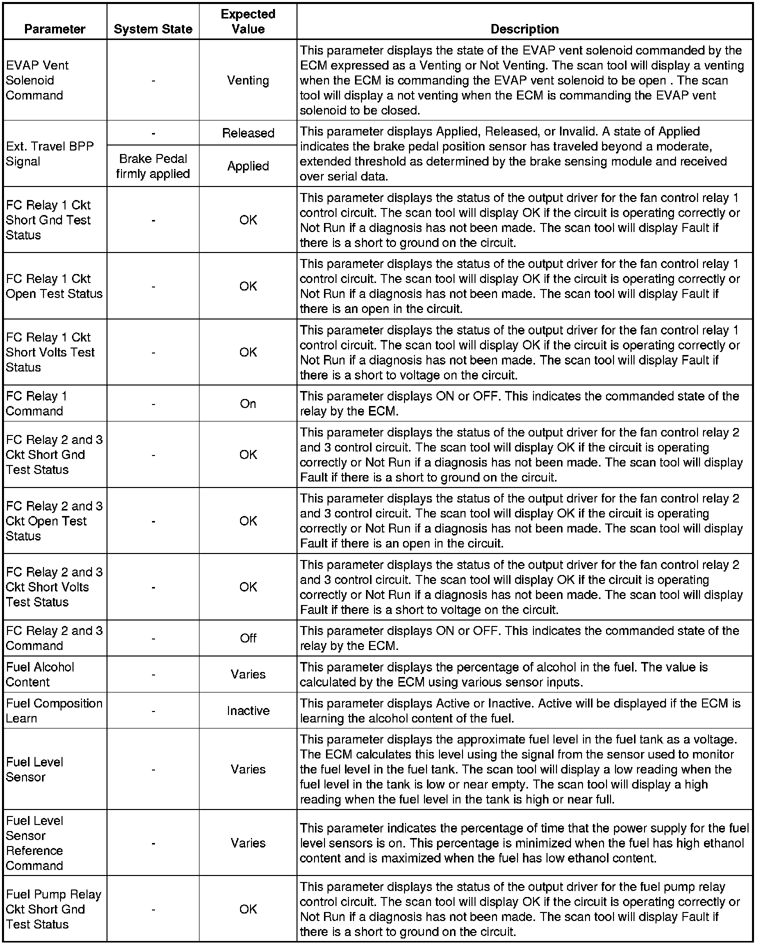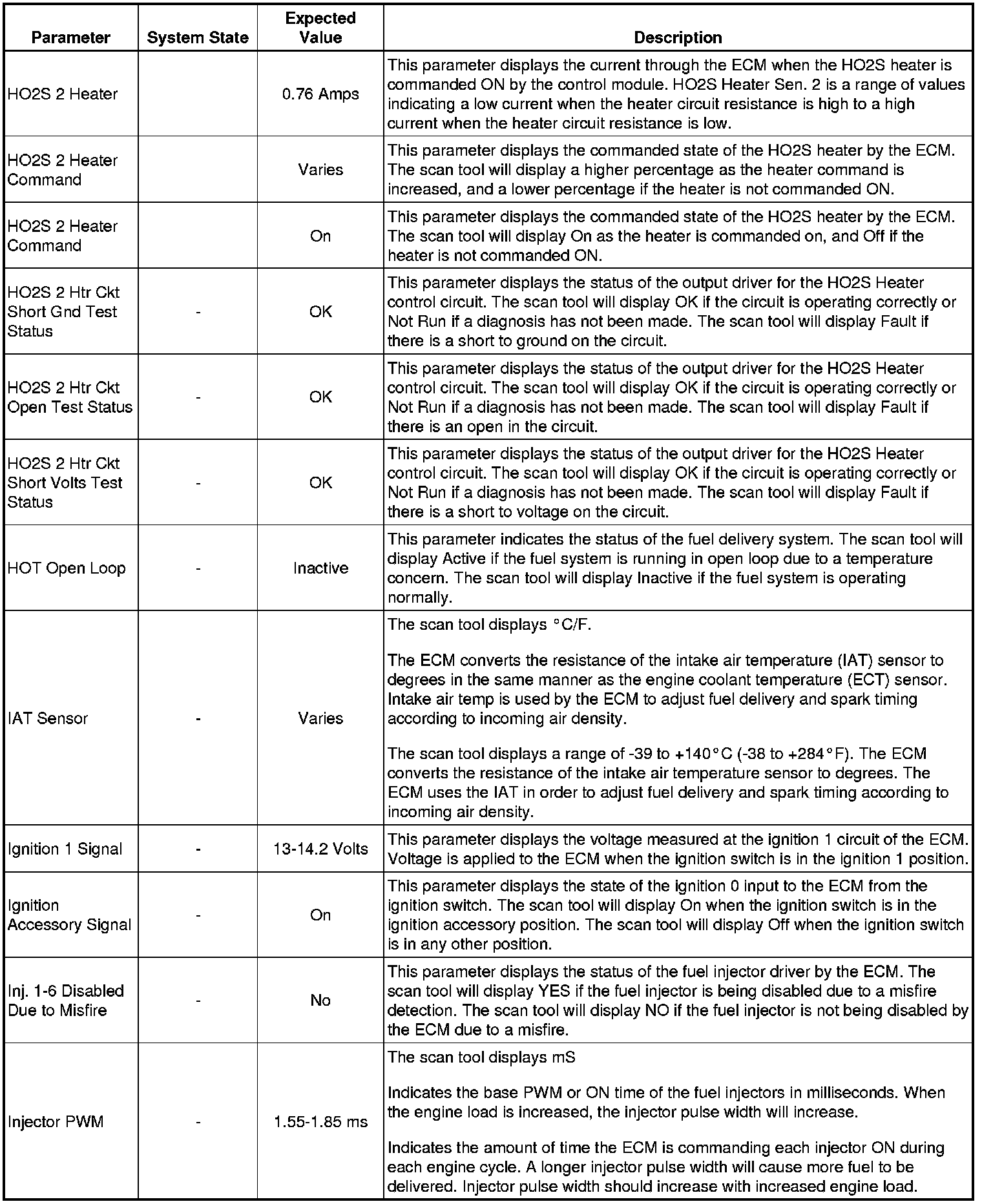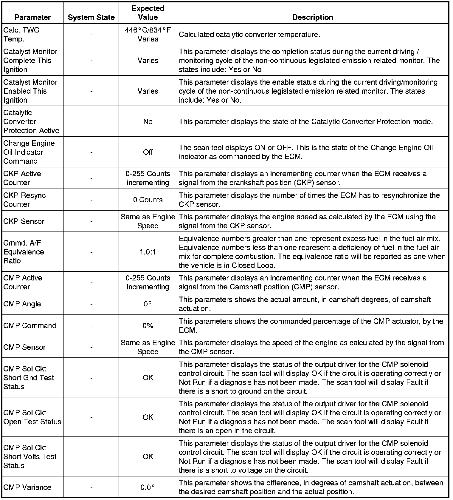 The Engine Control Module Scan Tool Data List contains all engine-related parameters that are available on the scan tool. The list is arranged in alphabetical order. A given parameter may appear in any one of the data lists, and in some cases may appear more than once, or in more than one data list in order to group certain related parameters together.