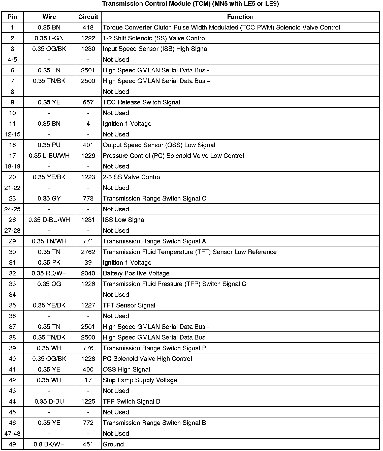 Transmission Control Module (TCM) (MN5 with LE5 or LE9)
