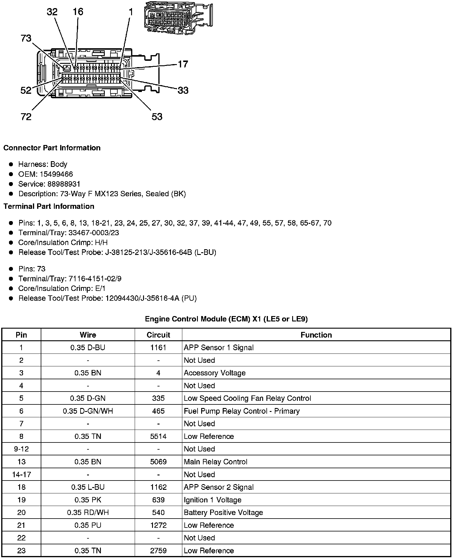 Engine Control Module (ECM) X1 (LE5 or LE9)