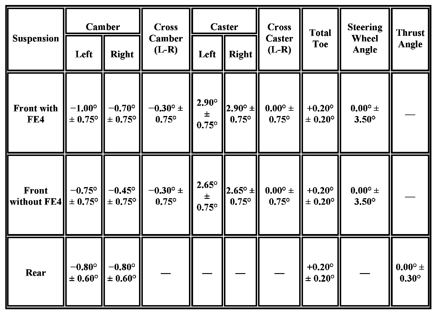 Wheel Alignment Specifications