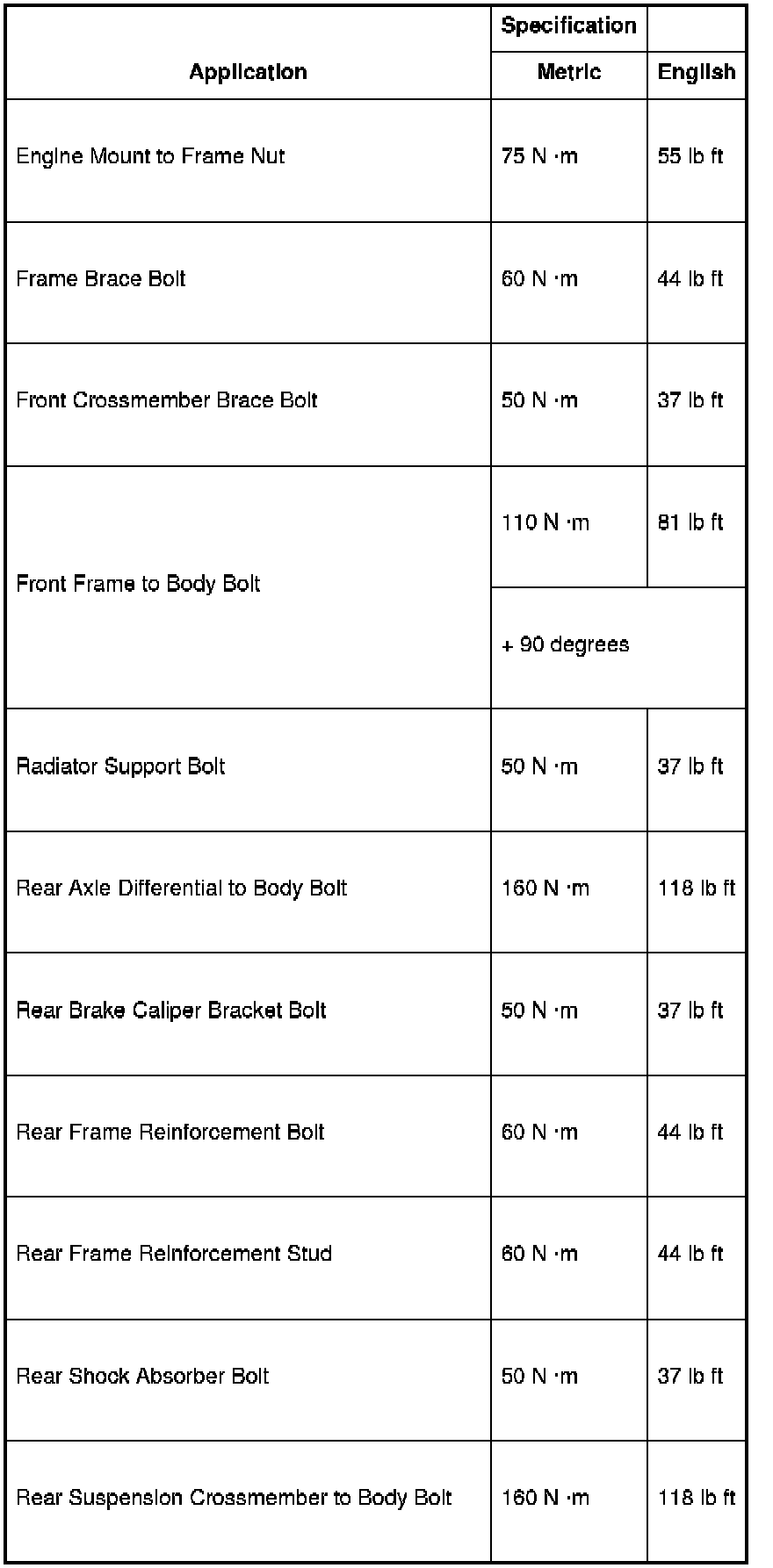 Fastener Tightening Specifications