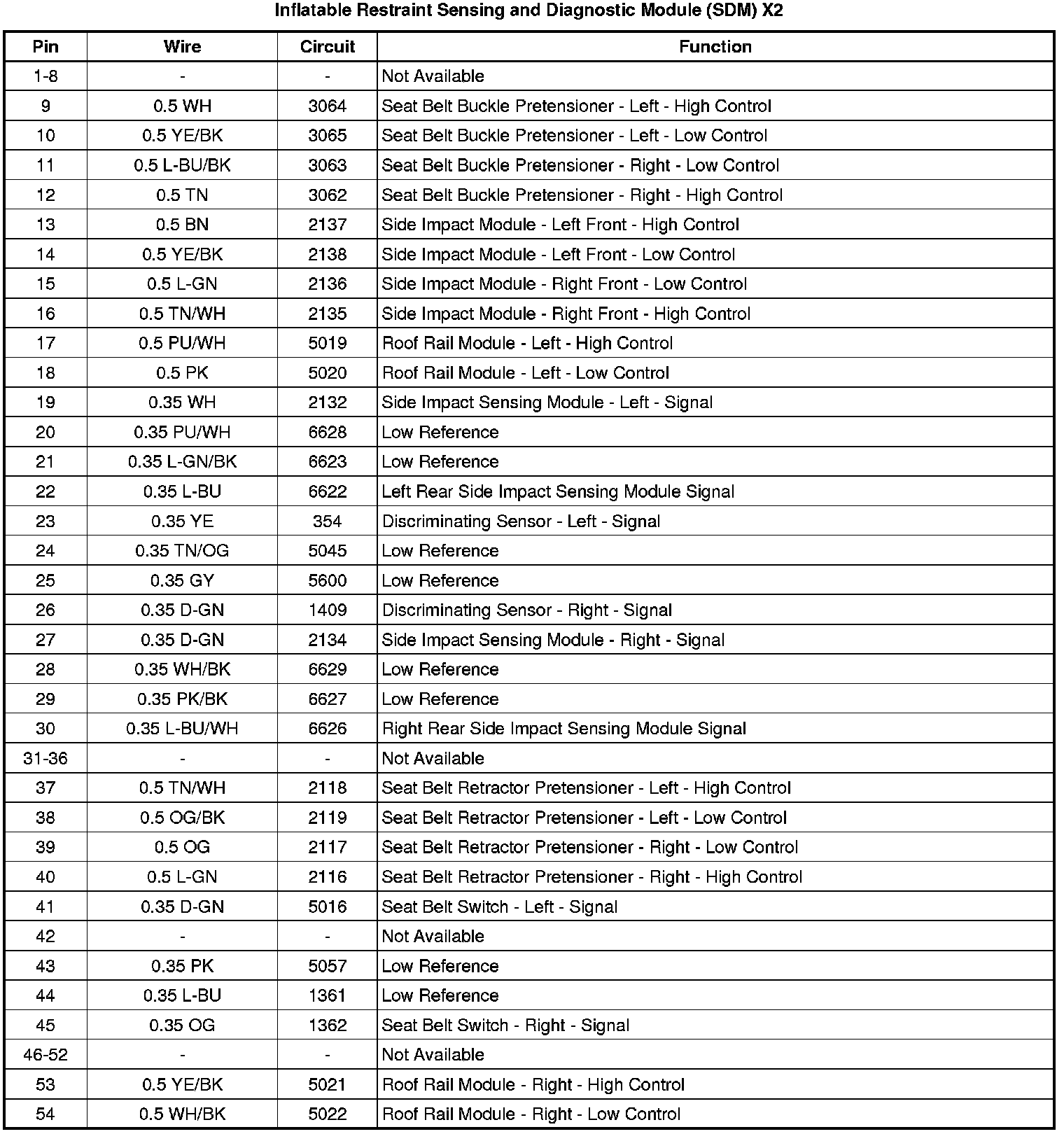 Inflatable Restraint Sensing and Diagnostic Module (SDM) X2