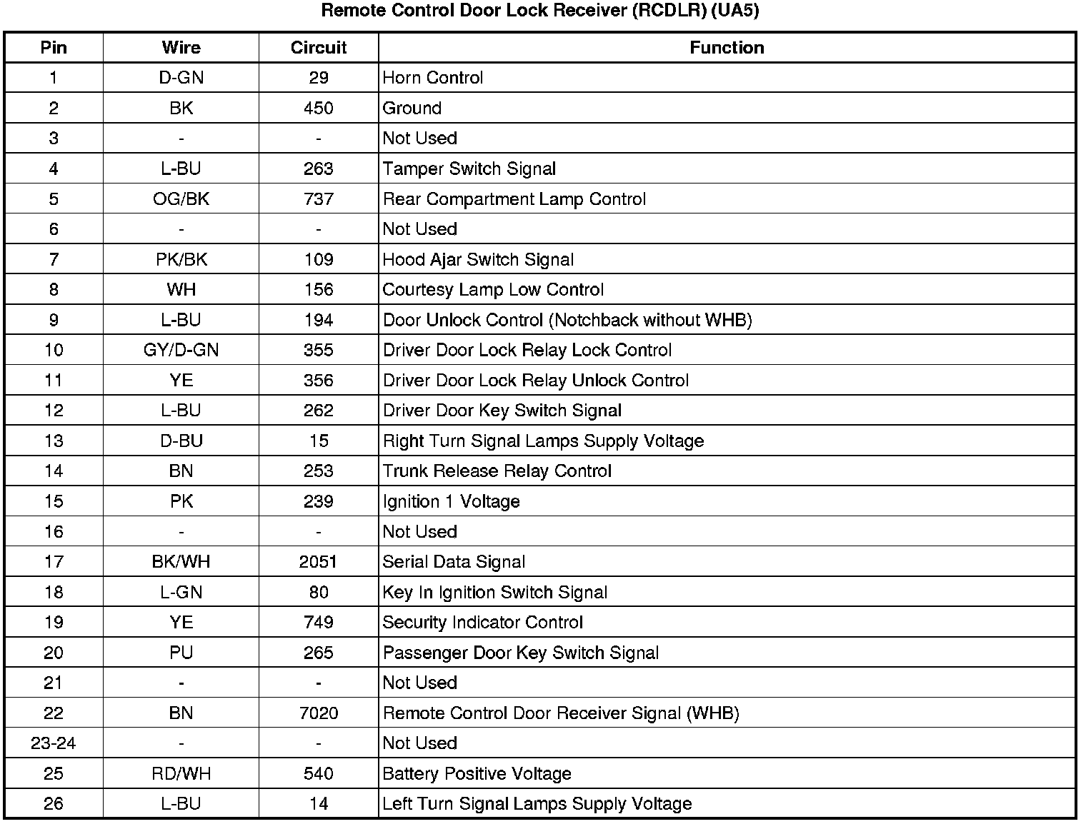Remote Control Door Lock Receiver (RCDLR) (UA5)