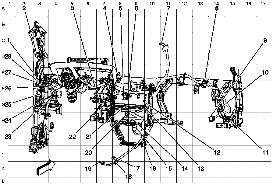 Instrument Panel Harness Routing (LHD Shown, RHD Similar)