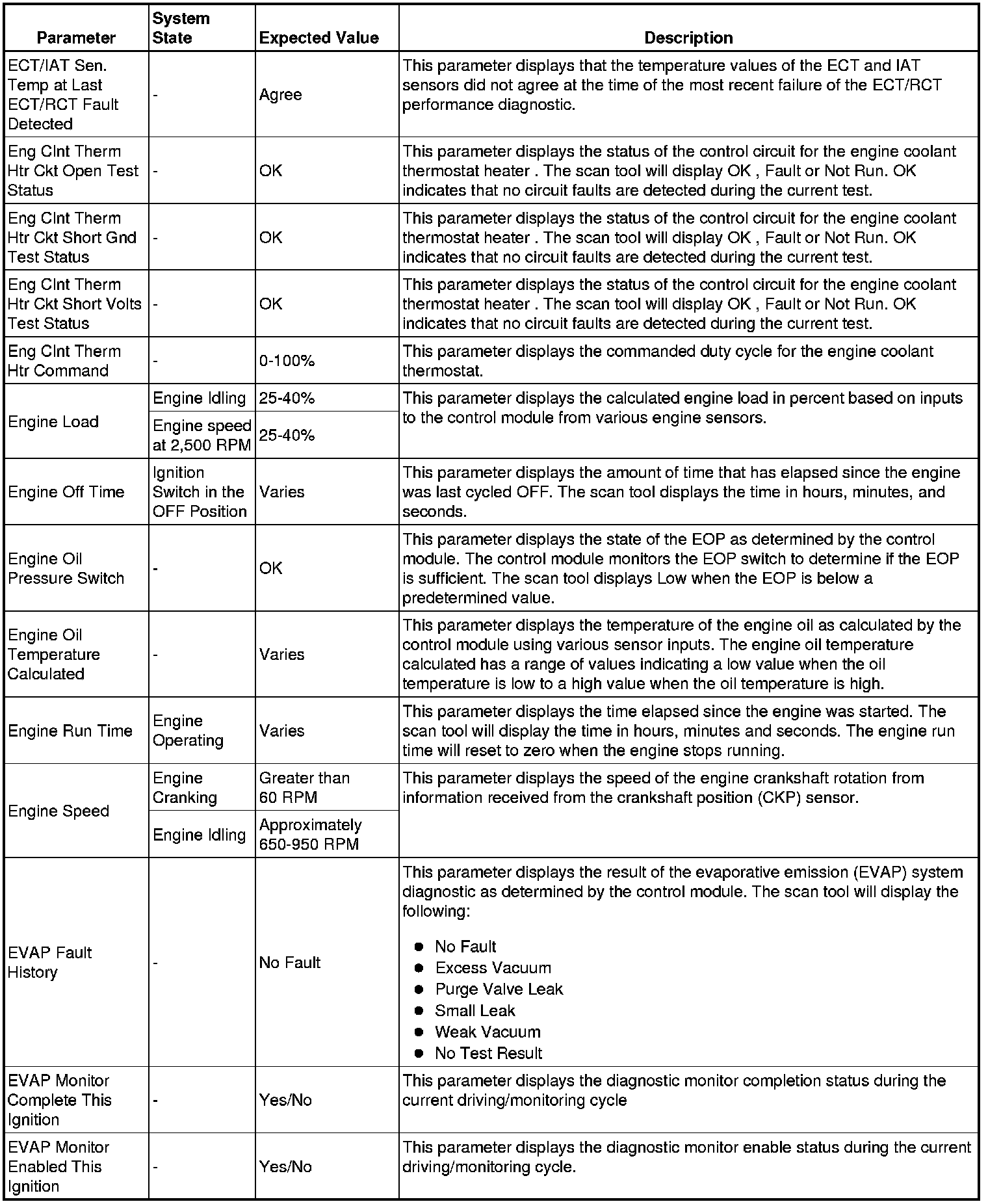 The Engine Control Module Scan Tool Data List contains all engine-related parameters that are available on the scan tool. This is a master list arranged in alphabetical order and not all the parameters listed are in every engine platform.